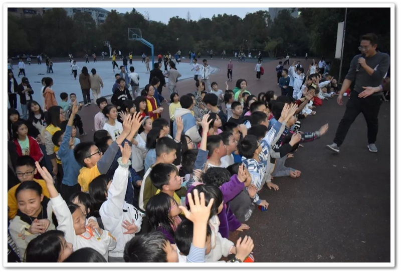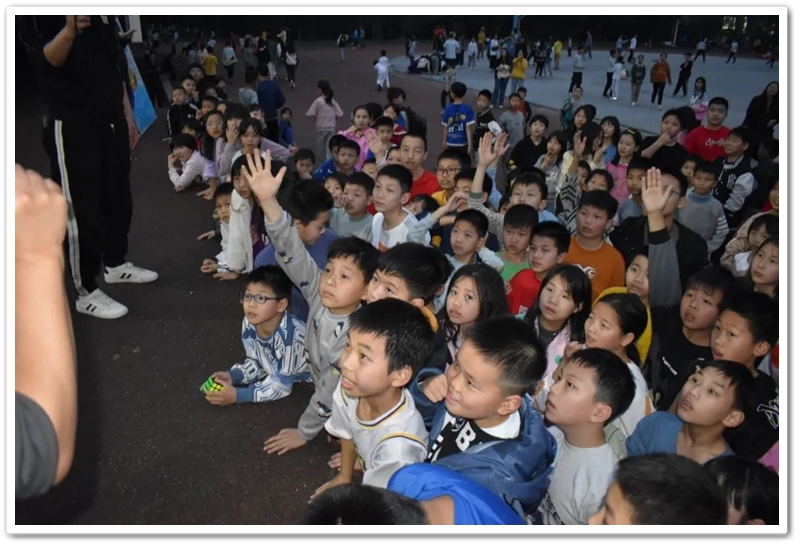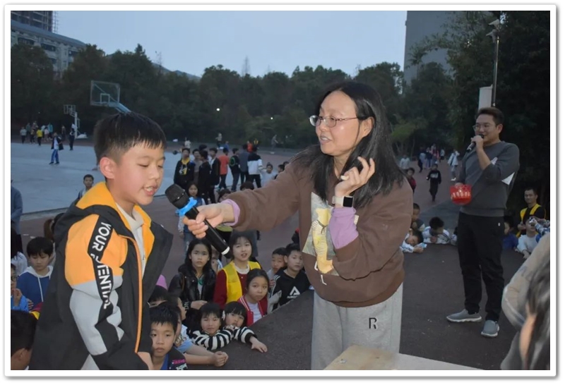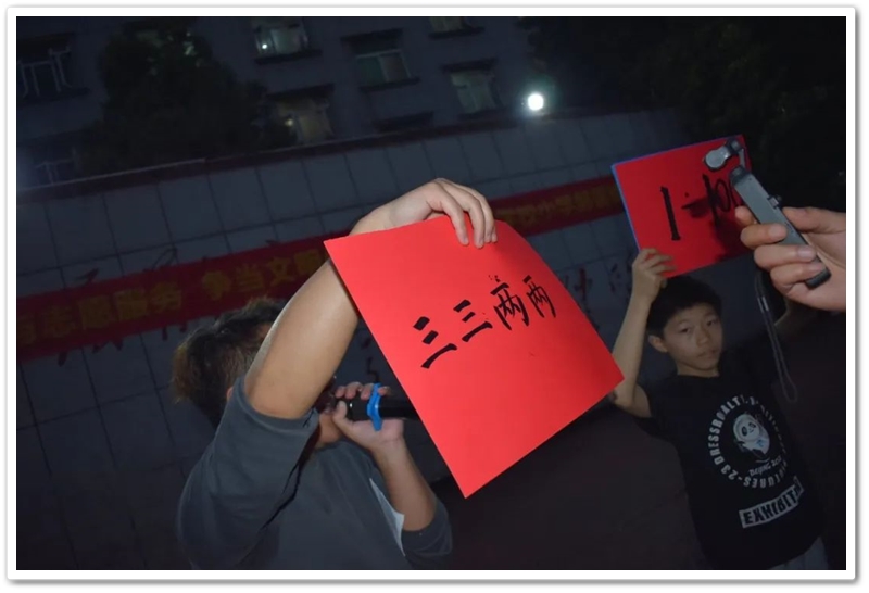 科学小课堂结束后,互动环节——猜数字成语。台下孩子们“炫”的机会来了,一个个争先恐后,“我、我,我来,我来,let me try~”把现场的氛围推入了一个新的高潮,台下的老师们也心里默默地参与进来。“十、3322、1+2+3、1×1=1、0+0=0、5,10、333555......”一个接一个,台下的欢呼声一浪高过一浪,学生的答案也新奇不已,让主持人不得不感叹:江南多才俊,还看正源少年郎!