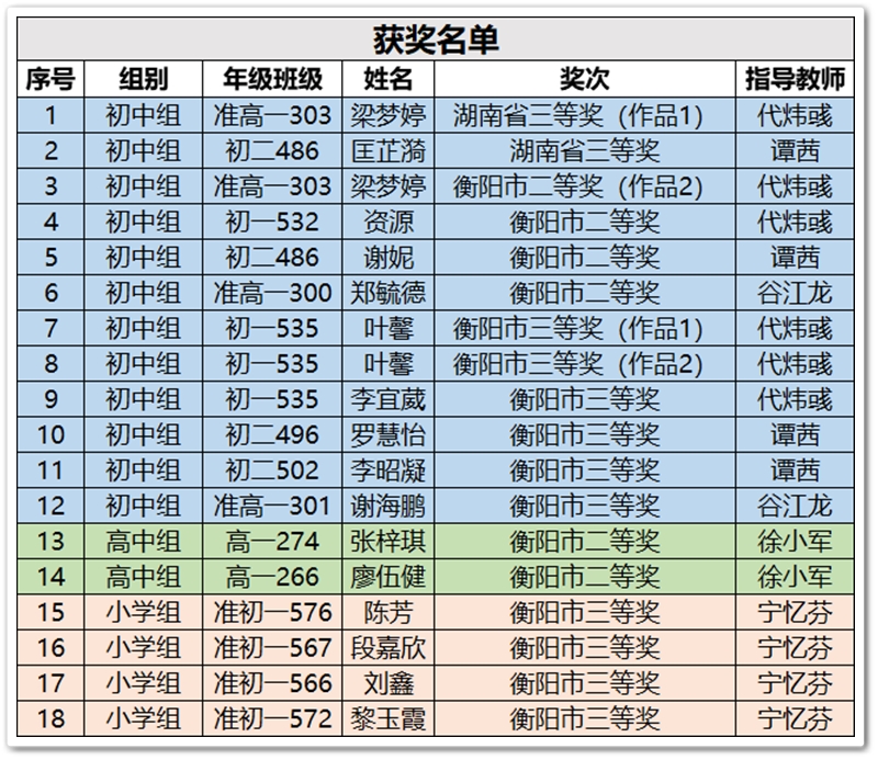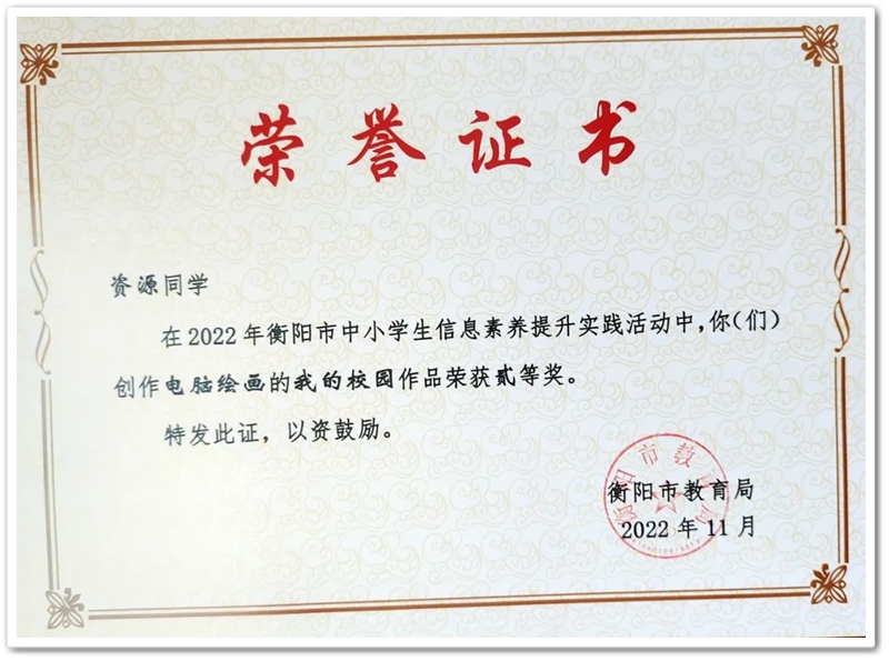 热烈祝贺我校在2022年衡阳市学生信息素养提升实践活动中取得佳绩