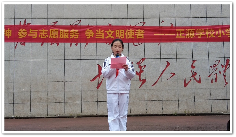 随即,罗主任宣布:“正源学校小学部学雷锋活动月正式启动”,最后在《学习雷锋好榜样》的歌声中结束了此次启动仪式。