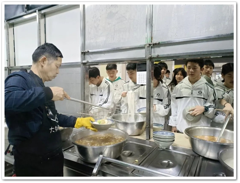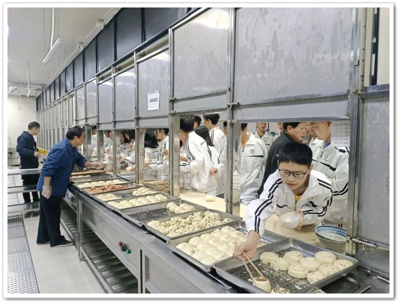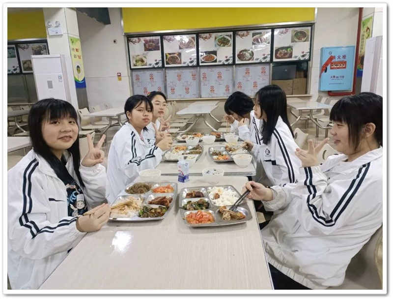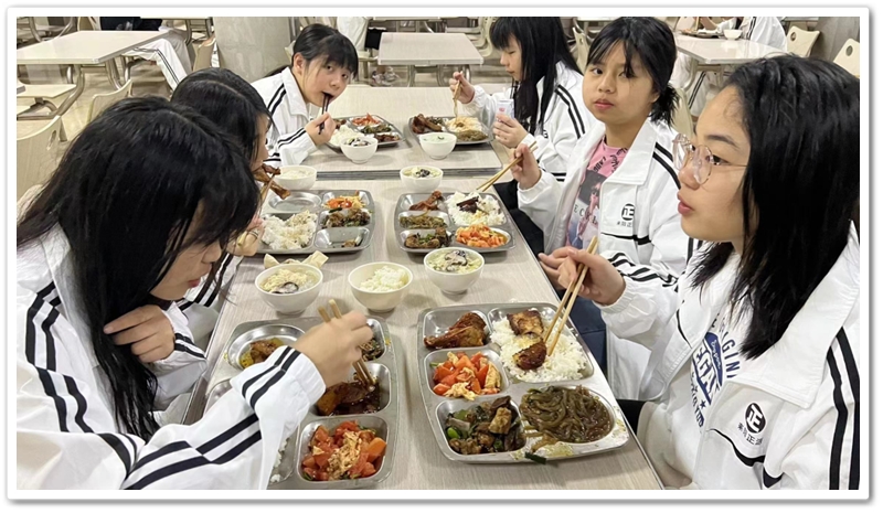 午餐菜品琳琅,米饭洁白,豆浆热气腾腾,整个餐厅充满饭菜的清香。 王敏同学说,菜的品种真多,让我们眼花缭乱,不知选哪几样好。 文洁同学说,菜的味道很好,我们吃得津津有味。其他同学在接受采访时也是赞不绝口。
