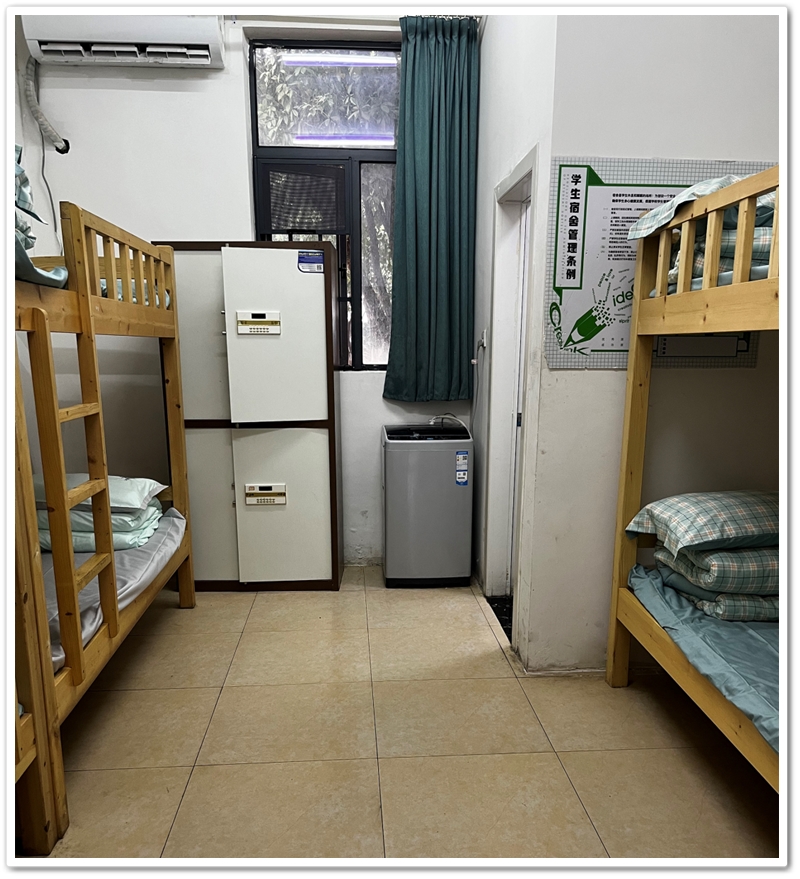 11日早八点,同学们踏上征程。一路上歌声飞扬,笑语喧哗,三个多小时的旅途,不知不觉中就到达目的地。同学们在学生公寓安顿下来,只见房间粉刷一新、爽心悦目,每间房三张木床结结实实,铁皮衣柜崭新,桌几、空调、热水器、洗衣机等一应俱全,同学们大有宾至如归的感觉。