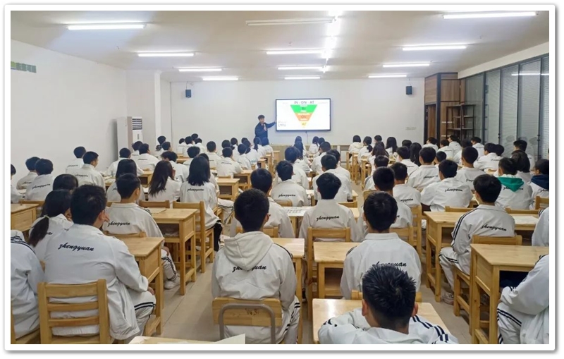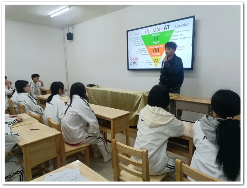 12日早七点,全体学生集中到一起,听胡浩天老师上英语课。胡老师是湖南师范大学外国语学院外国语言文学专业毕业,硕士研究生。他所讲独特的英语学习方法,让同学们耳目一新。