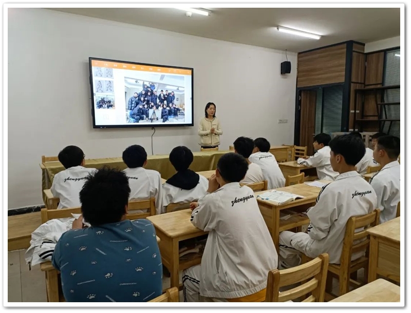 参观完毕,音乐班和美术班的同学分别到指定地点听取培训学校老师的介绍,并进行互动交流。美术班这边由张慧明、刘慧、程仁雨老师主讲。张老师是全国八大美院之一天津美术学院毕业,已经有15年教龄,原是长沙山枫·艺谷培训学校首屈一指的骨干教师,从正源考上清华美院的黄兰毅等拔尖同学多是经过他的手培养出来的。他的爱人刘慧老师,湖南师范大学树达学院艺术设计系本科毕业,从事美术教育工作11年,也是山枫·艺谷学校的骨干教师,现在一起加盟长沙正源。2021年本科毕业于贵州大学环境艺术系的程仁雨,年轻帅气,他与同学们建立亦师亦友的理念一下子就赢得了同学们的信任和掌声。