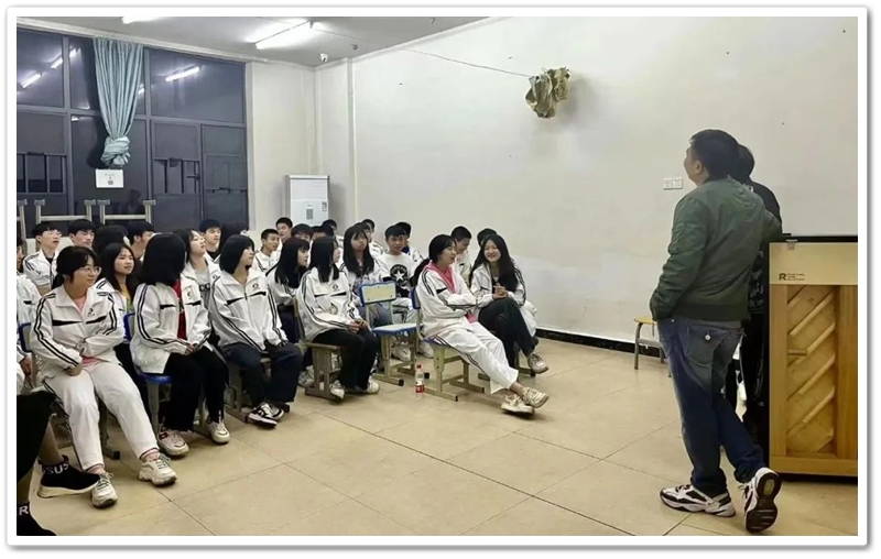 学校办公室主任朱明之也以自己读高中时的切身经历,自己高中同学的经历,以及自己所教学生的案例,说明艺术是一种非常高雅的素质,也是一项非常高雅的职业,鼓励同学们不要看轻艺术,努力献身艺术。条条大道通罗马,像中央戏剧学院“五朵金花”之首、耒阳籍表演艺术家伍宇娟以及她家的几姐妹,都是从事艺术工作,被《人民日报》专版报道过的耒阳籍农民画家谢小刚,他们都在艺术方面取得了不平凡的业绩,艺术天地大有可为。