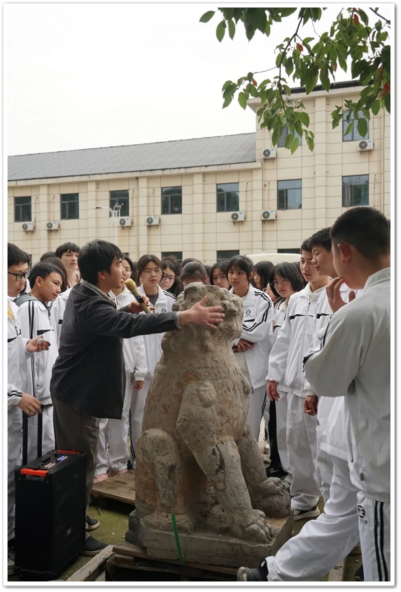米老师带着同学们到运动场周边参观学校搜集来的石碑、石柱、石匾、石兽等等,层层叠叠,星罗棋布。指着有些风化、头部有些许坏损的石狮说:这是宋代的,也是目前学校搜集到的最早、最稀罕的古迹。他说,元代、明代搜集到的也不少见,清代及以后的就更多了。指着一样一样的物件,如数家珍,米老师介绍,这些珍宝,都将安放在美术部大楼和其他适宜的位置。待到一切竣工之后,长沙正源艺术培训学校将是长沙最具特色、最具影响力吸引力的艺术培训学校。米老师还说,前不久湖南省有关方面领导和专家来学校考察后,对长沙正源的建造设计和宏观规划大加赞赏,鼓励长沙正源办出特色,办出规模,办出效益,造福湖南学子,实现正源提出的“人人上大学”的宏大目标。