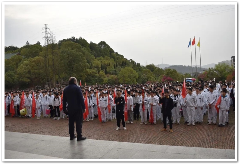 7:40,庄严的升旗仪式结束后,年级主任倪南辉对本次活动作总动员。倪主任先对同学们上次远足鹿岐峰活动做了简单的回顾和肯定,之后,强调了本次活动要严格遵守纪律,期待同学们把正源人良好的精神风貌展现在耒阳市民面前。最后,希望同学们继续发扬“掉皮掉肉不掉队,流血流汗不流泪!”的顽强拼搏精神,完成远足活动。