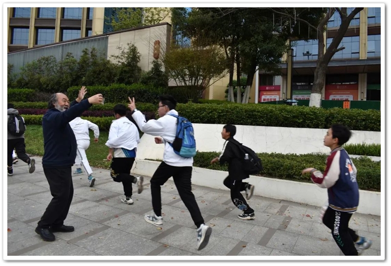 当行至楚才童子园时,正赶上孩子们户外集结,互动达到了高潮:“快快长大,我们在正源等你!”