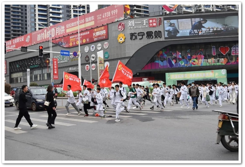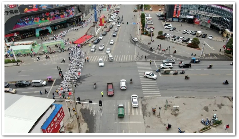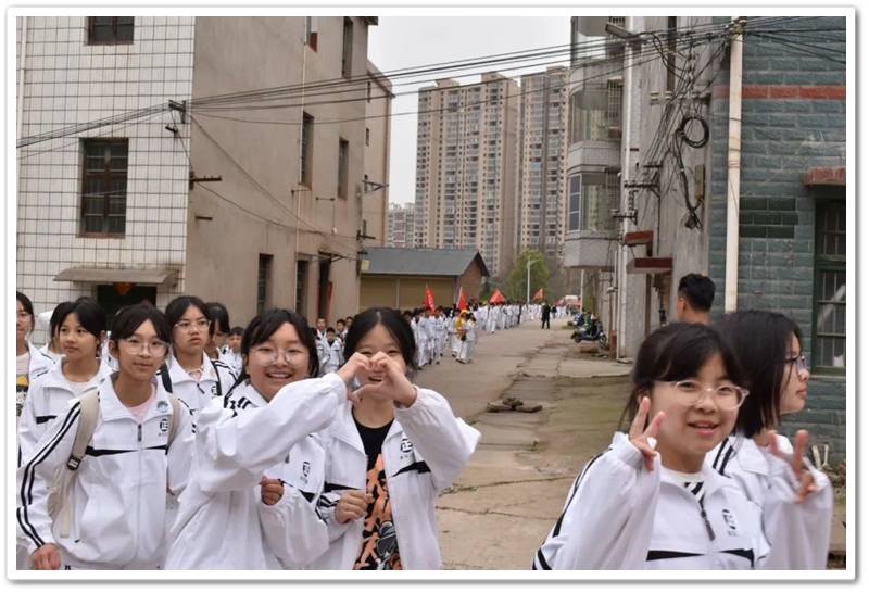 行进途中,大家不停与行人挥手致意。看到学生模样的孩子,广而告之:“欢迎来正源!”、“只要进正源,人人上大学!”,街上行人不时投来赞许的目光。