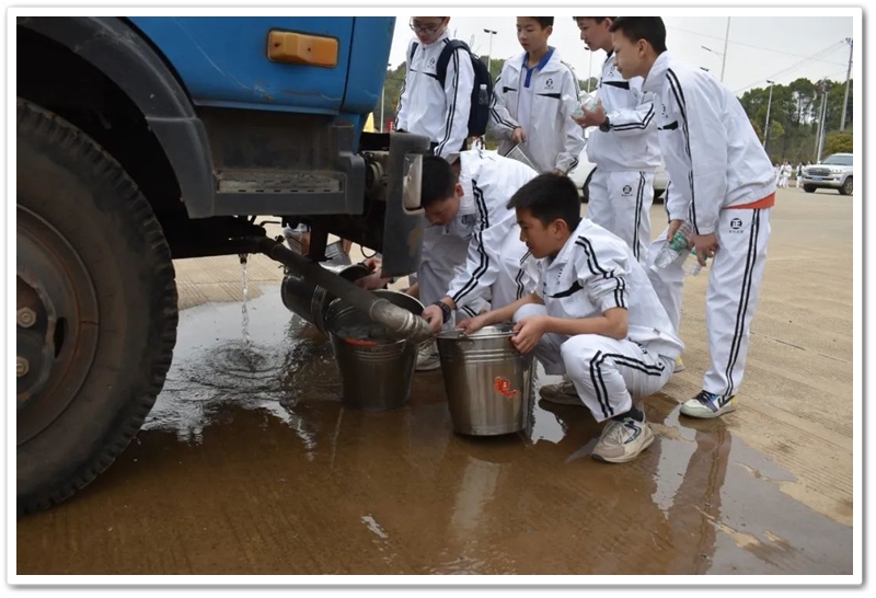 3月13早上,天空中偶尔飘零着些许雨点,但这丝毫也影响不了孩子们那颗跳跃激动的心。班旗、校旗、水桶、背包等,早早就准备好了。7:30,同学们身着统一的春季校服,齐刷刷地列候在校广场。整装待发,只等一声令下。