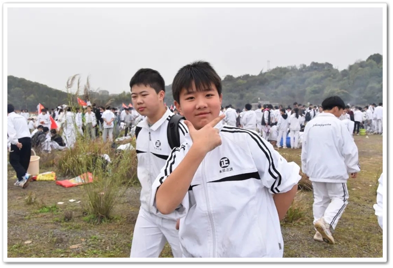 打扫好野炊点的卫生后,各班级依次在全民健身中心合照留念。“正源,正源,勇往直前!敢打敢拼,敢为人先!”雄壮有力的呼号声响彻天空。
