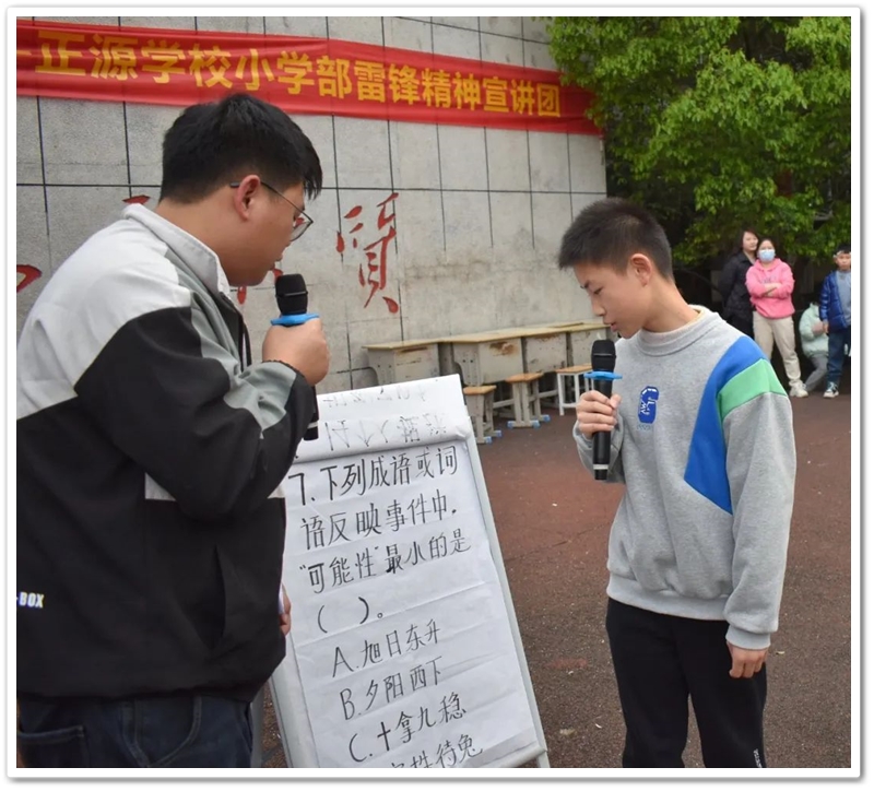 3月31日下午,白云悠悠,清风习习。在这惬意的春日下午,正源学校六年级数学组在小学部操场主席台举行了“炫彩舞台”的第四期节目。本期节目打破数学学科以往给大家枯燥、艰深的印象,以趣味与知识相结合的益智游戏为主打,台下的同学们参与性非常高,欢呼声、喝彩声响彻在校园的每一个角落。