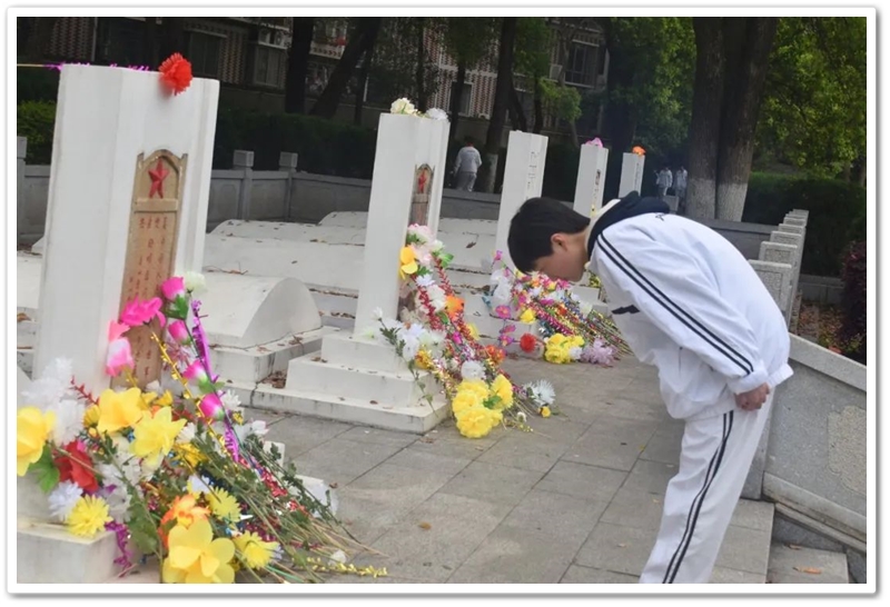 校团委副书记黄建生老师主持祭奠仪式。按现代文明祭扫要求,祭扫仪式简朴而庄重。
