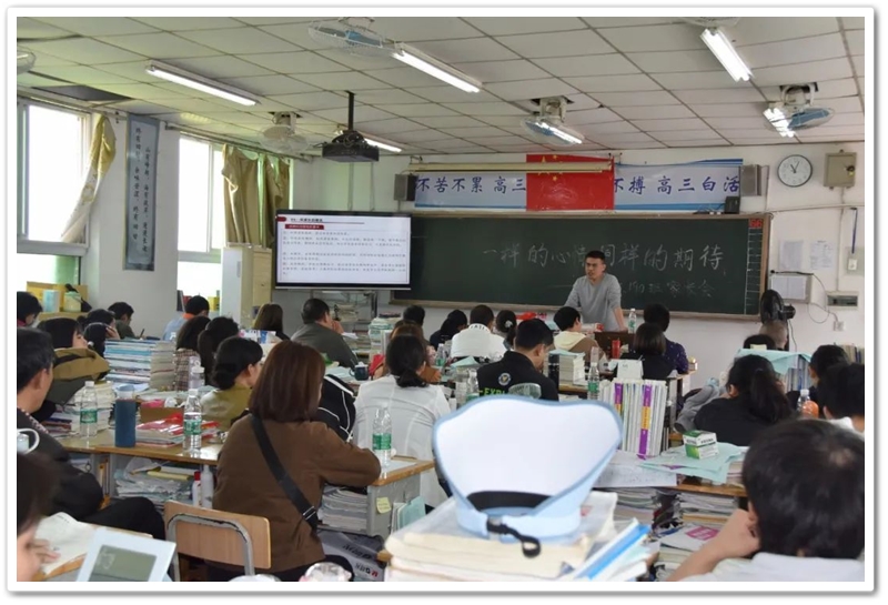 介绍市政府、教育局、学校对本届高三的高度重视与大力投入的同时,罗校长也指出了本届高三的特殊性及面临的严峻形势。因配合上级部门2019年的工作部署,正源本届高三年级以低至581分的中考录取线招收了四百余名非正源初中毕业生;因大力拓展复读教育,创新推出“2年制复读班”,本届高三招收了大量高考线下100多分、甚至线下200分的复读生进行“2年制”复读教育。可以预见,本届高三今年的高考形势将特别严峻。对此,学校及年级开展各项针对性措施冲刺高考以期极限提分。罗校长强调,“把月考当高考,把高考当月考”备考理念及常态化应考、标准化组考、封闭式送考等正源特色高考组考,多年来成效斐然屡创佳绩,是助力学生稳定发挥、超常发挥的有力保障。农家学子、留守儿童占主体的正源学校里,放心让学校统一安排孩子们轻松迎考,家长“放手”配合学校工作,就是给孩子们最好的教育。