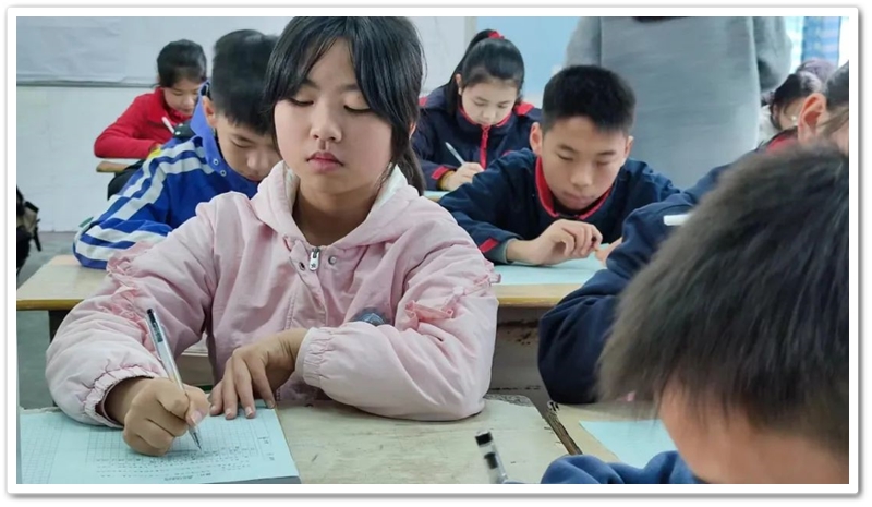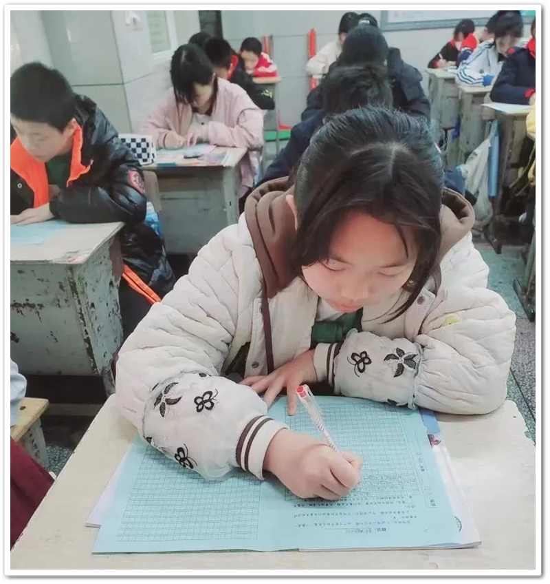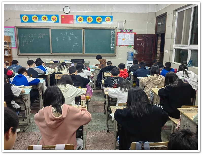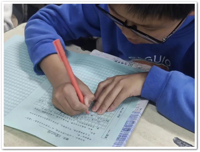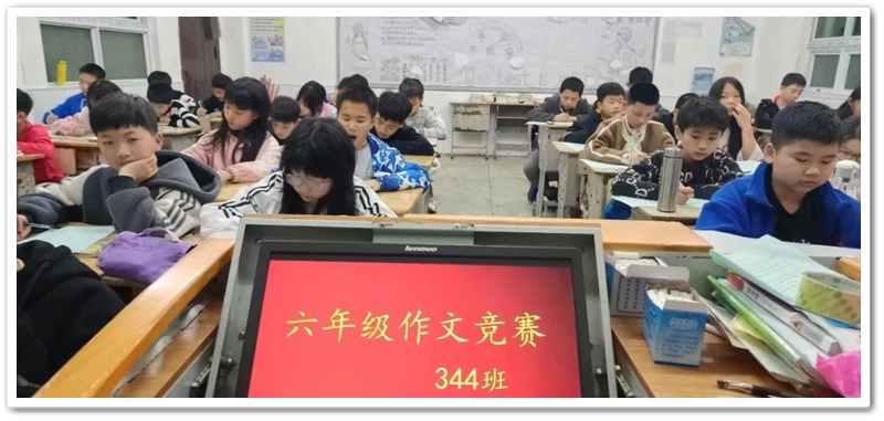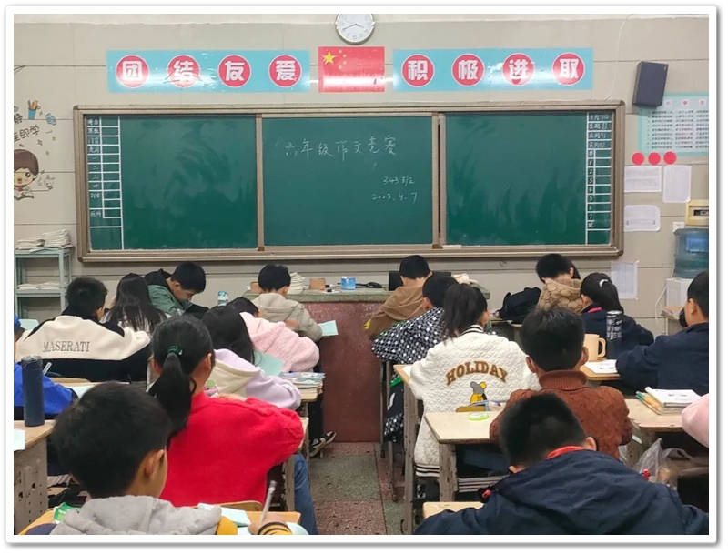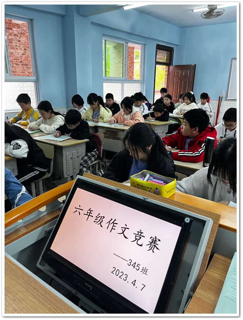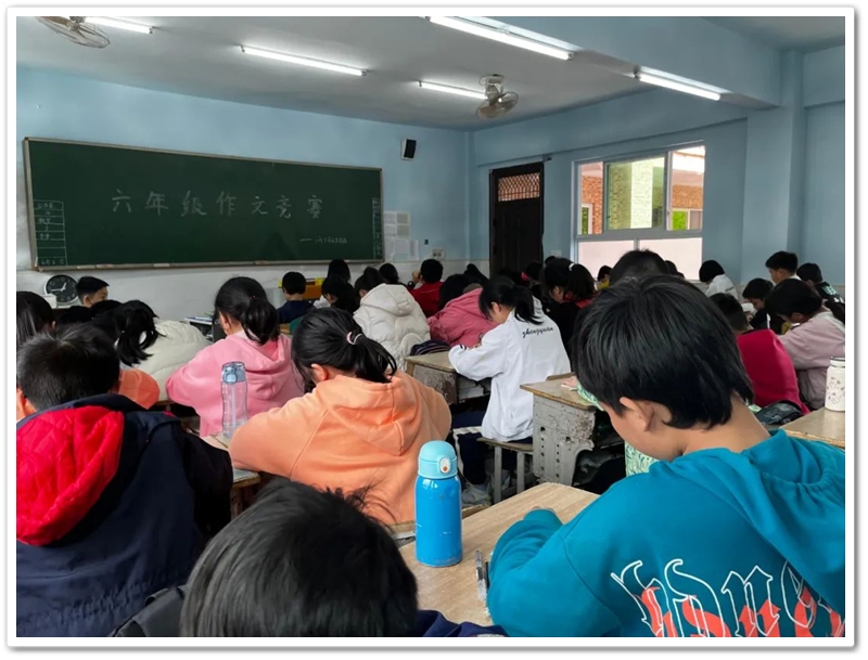 作文比赛现场,六年级的同学们个个精神饱满,信心百倍,认真审题。有的同学文思泉涌,奋笔疾耕;有的同学斟酌字句,凝神遐想。不一会儿,空白的作文纸上变成了美丽的答卷。