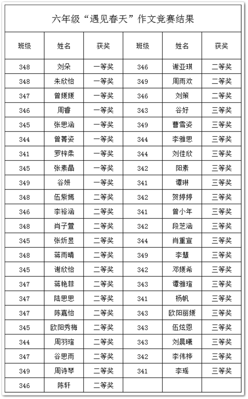 比赛结束后本年级的语文教师集中评比。按照现场作文竞赛方案要求,经过老师们认真审评,评出一等奖9名,二等奖17名,三等奖19名,并发放荣誉证书及奖励。获奖名单如下: