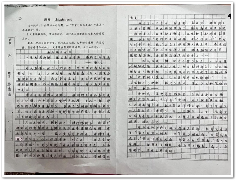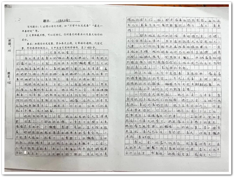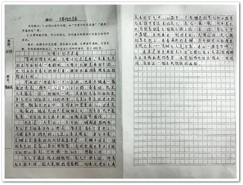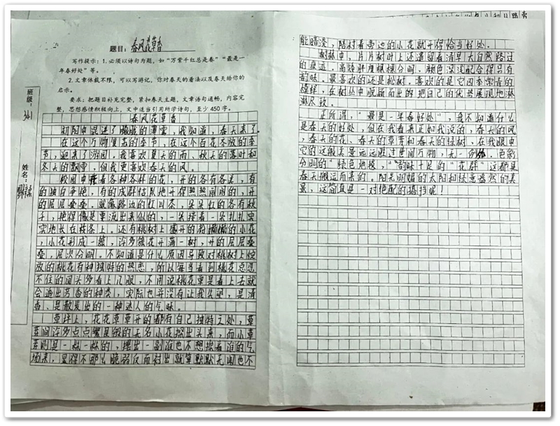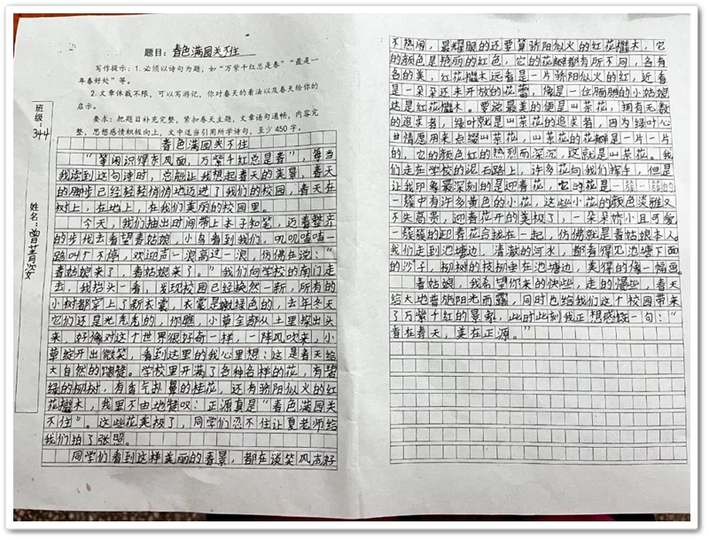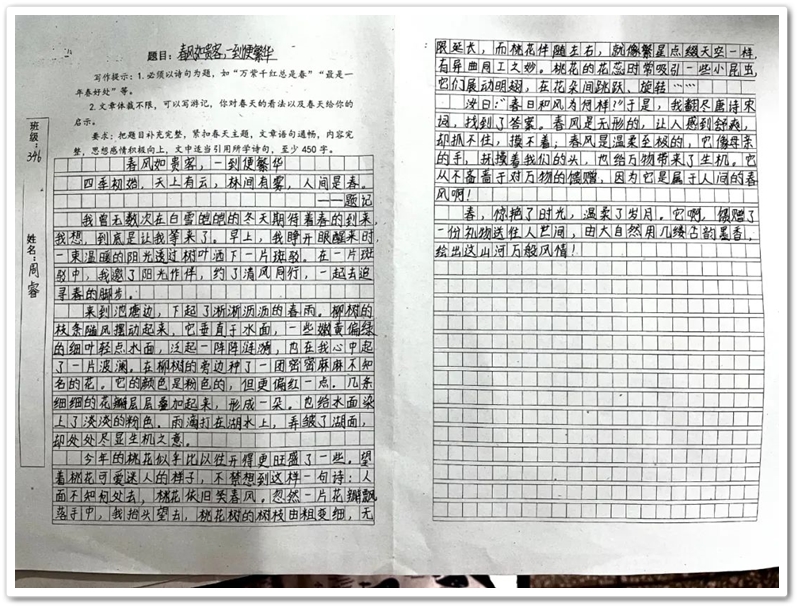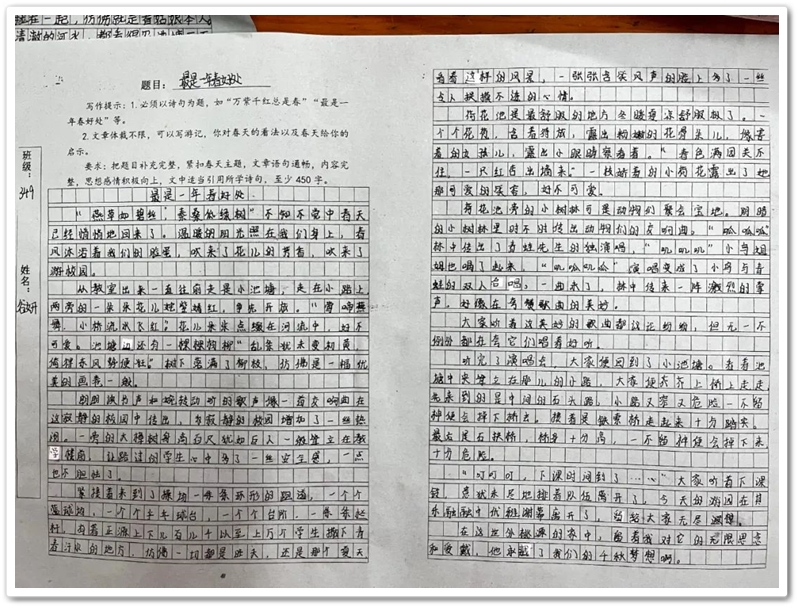 4月7日正源六年级组举行了以“遇见·春天”为主题的作文竞赛。本次作文竞赛要求以诗句为题,通过学生手中的笔,记录对春天的感悟。