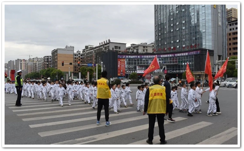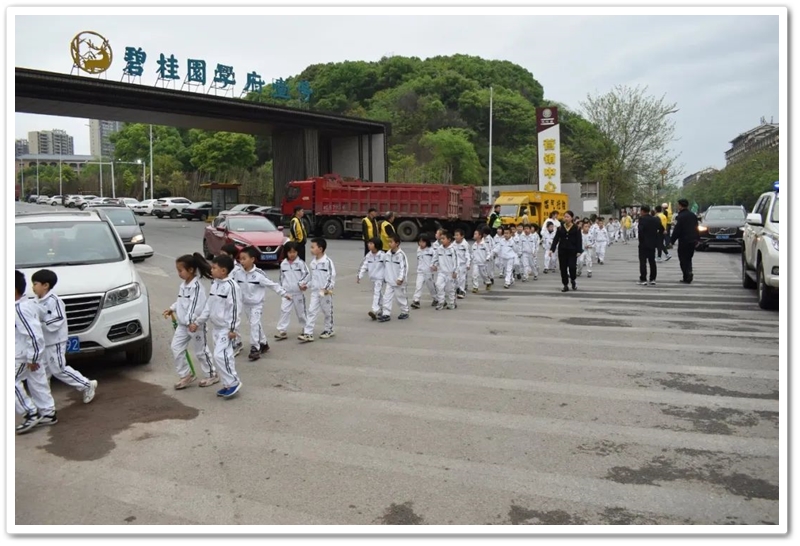 除了带队跟班的老师,学校特意安排了学校行政及德育处的工作人员。他们一路随行并在每一个红绿灯处,每一个转弯的路口,为孩子们保驾护航。