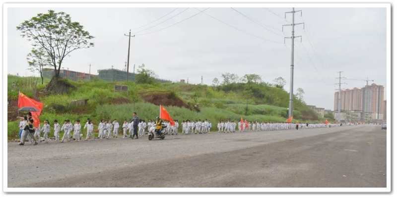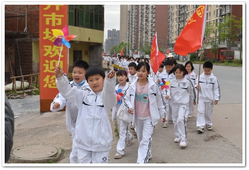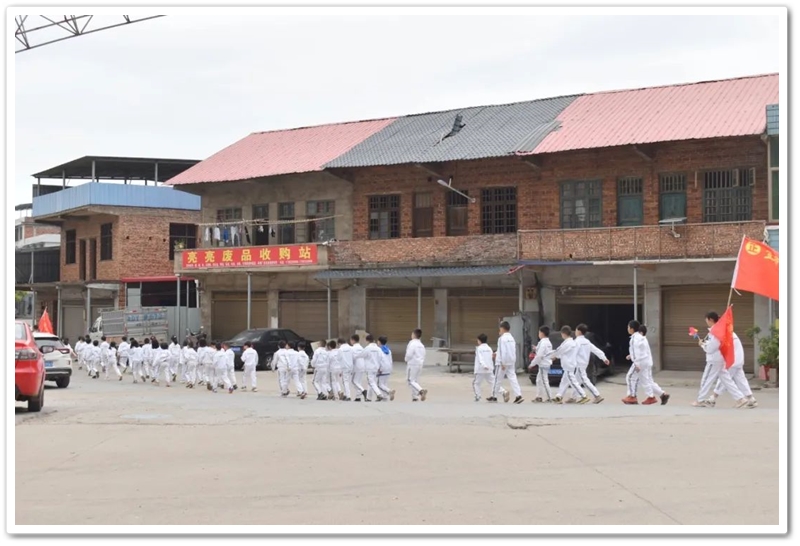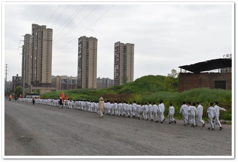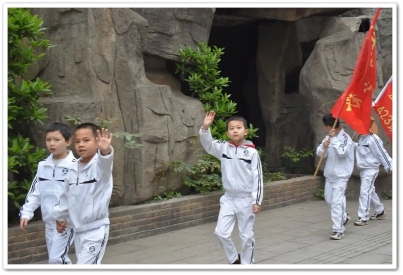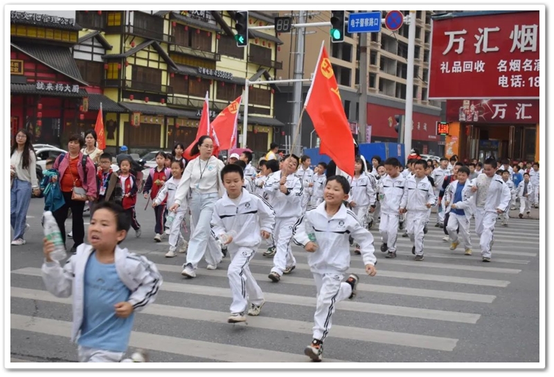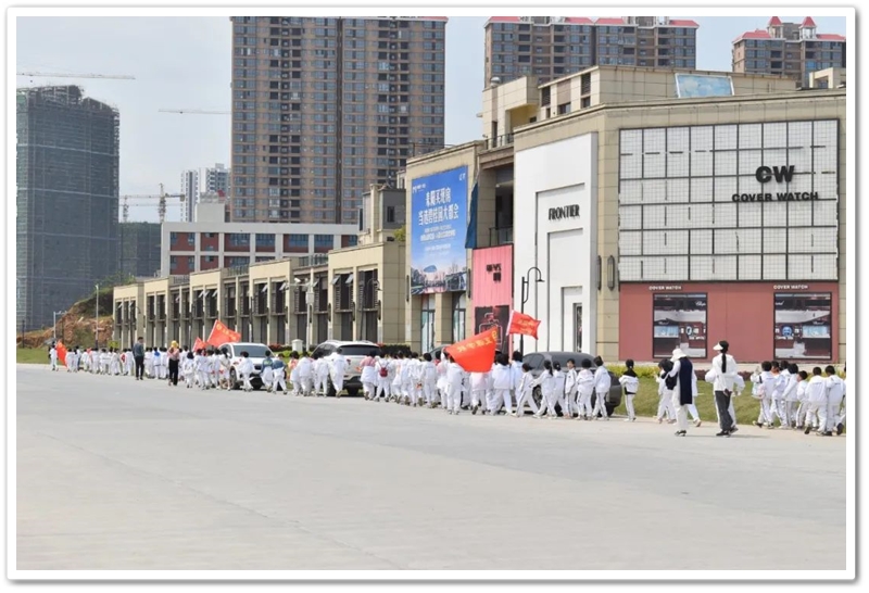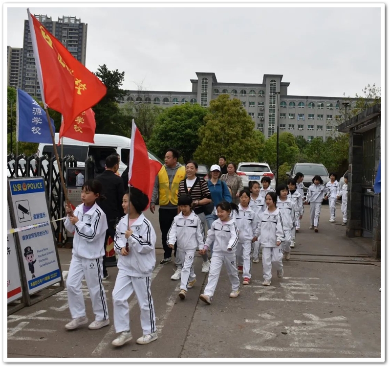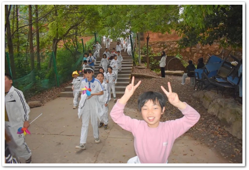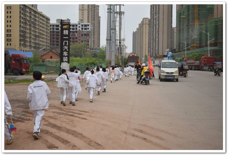 8点30分浩浩荡荡的一条“白色长龙”游动起来了。在班主任的带领下,孩子们一路上欢声笑语,兴奋不已。看见路上好奇的行人驻足,还会热情大方的挥动小手打招呼“爷爷好!”“阿姨好!”“你好!”“我们是正源学校的小学生!”......回应大家的则是饱含笑意的点头示意,或者高高竖起的大拇指。这让孩子们更加心花怒放。