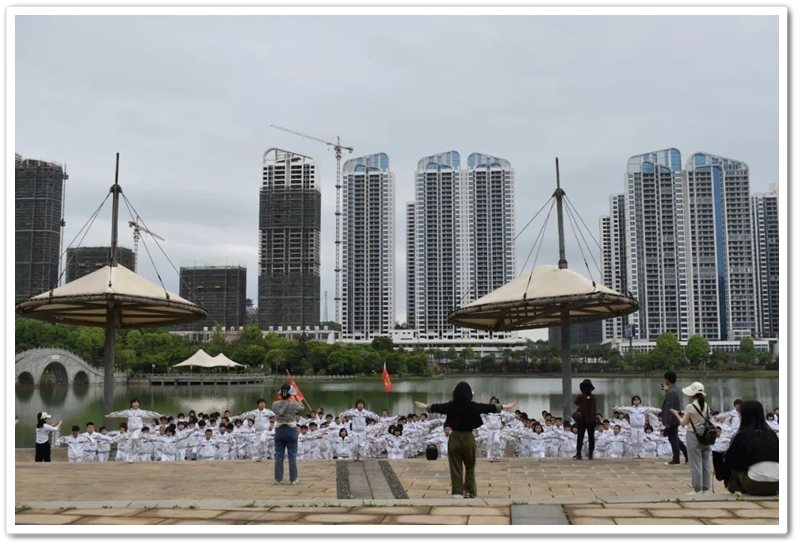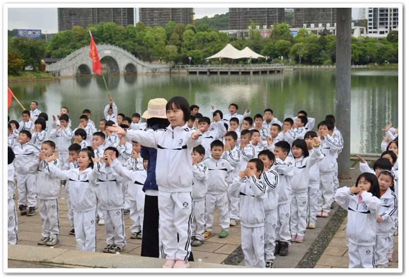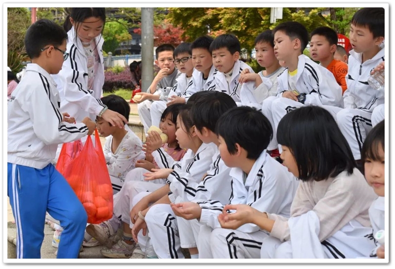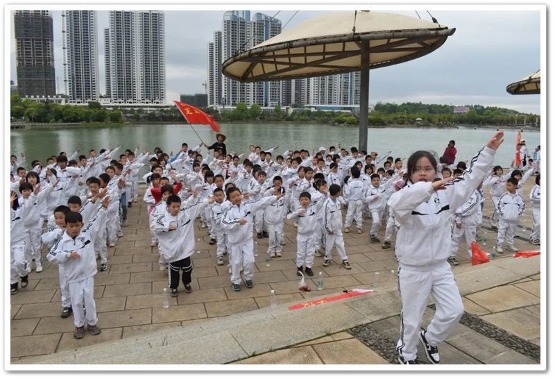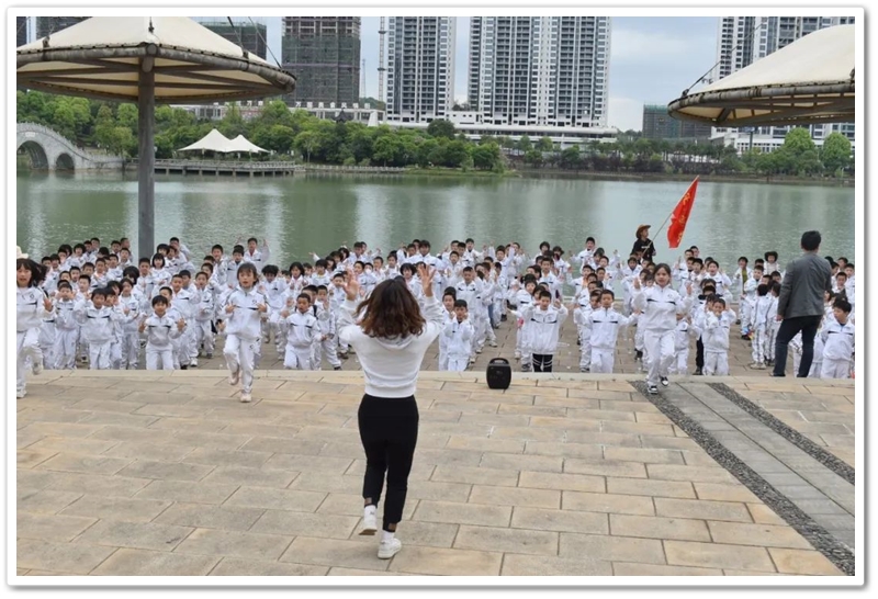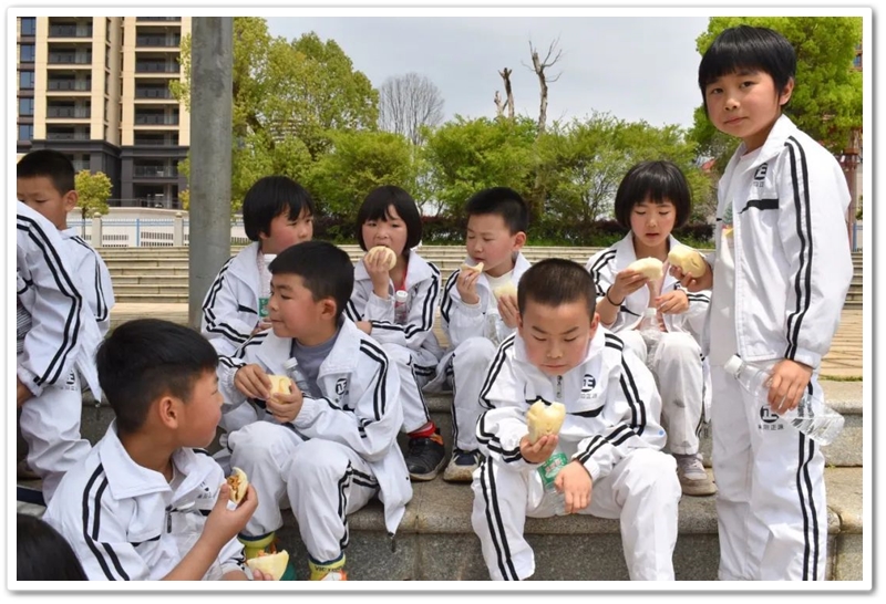 一路长途跋涉,从学校到顺湖公园十多公里的路程,孩子们终于在中午12点左右达到。先吃个”正源包子”补充体力。在音乐老师的带领下,700多名学生共同玩起来”快闪”,欢快的音乐和孩子们的欢笑声成了顺湖公园一道靓丽的风景线。