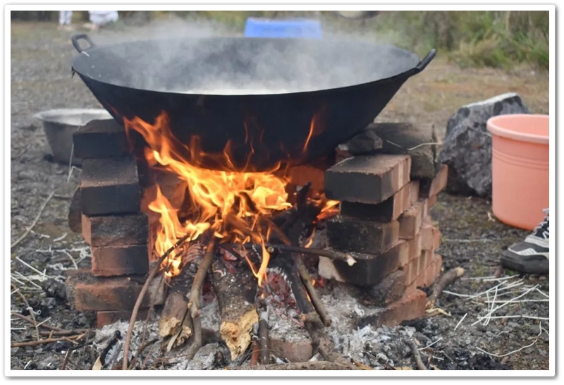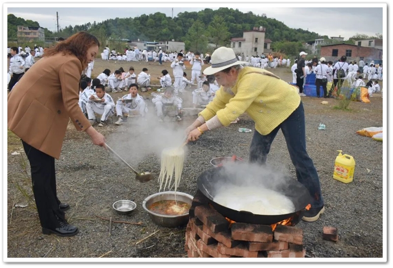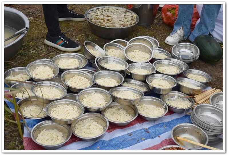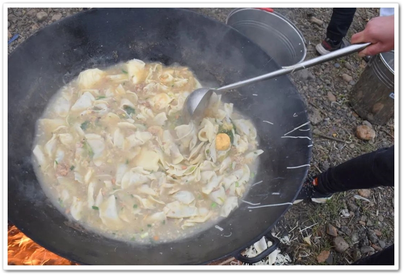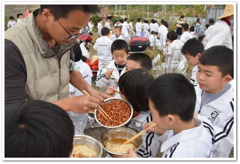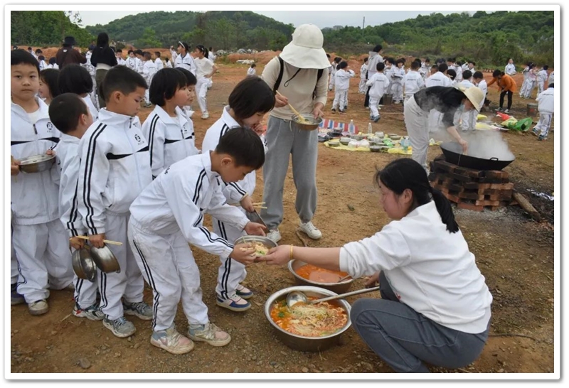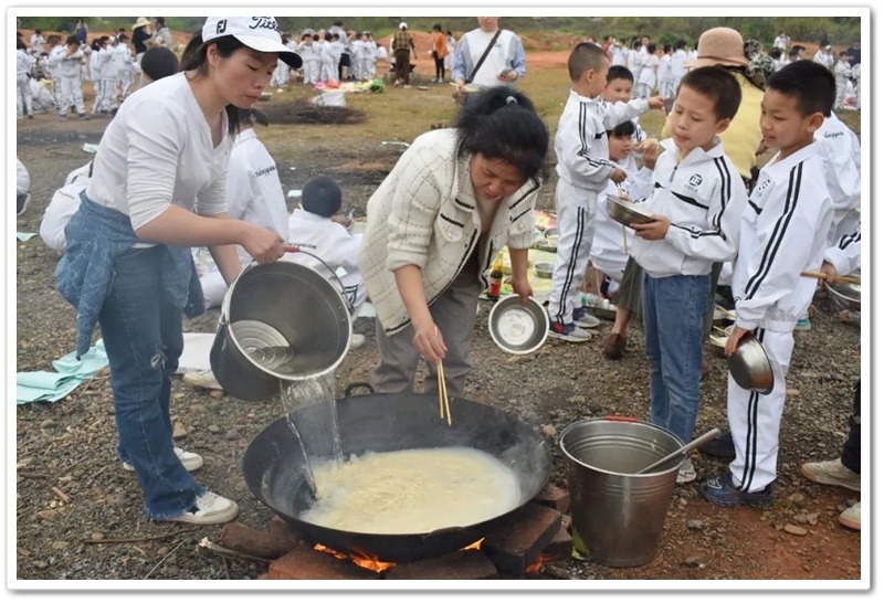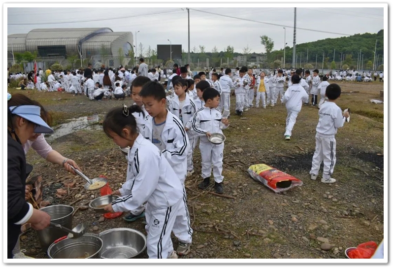 来到了野炊地点,大家更是兴奋不已。根据事先分好的小组,大家三五成群,在老师的安排下开始了“自助餐”。柴火组负责烧火拾柴,饺子组负责包饺子,后勤组负责发放碗筷物品,环保组负责过后收拾清理场地垃圾。还有啦啦组的同学在一旁为大家加油打气。一切都是那么和谐、有条不紊的进行。食物的美味更是让孩子把一路的劳累抛之脑后,又重新恢复活力。