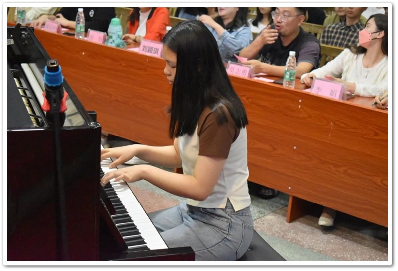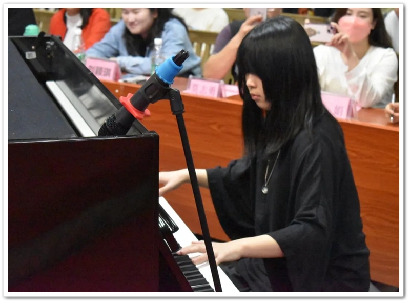 第九位选手是艺术部479班朱彦婕同学,她演奏的曲目是《席特练习曲》,此曲最开始是专为音乐会所写的练习曲,后逐渐演变为一种炫技性的艺术作品在音乐会上演奏。