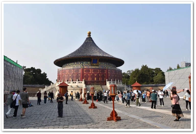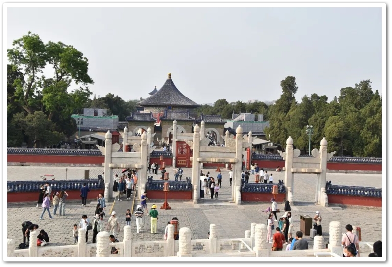 下午来到天坛。位于永定门大街的天坛,原名“天地坛”,为明清两代皇帝祭天、祈谷和祈雨的场所,是中国现存最大的古代祭祀性建筑群。