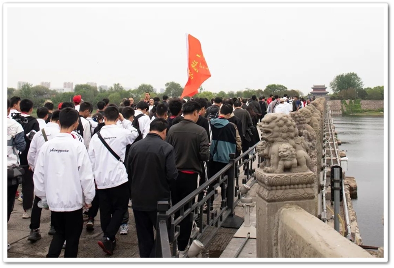 5月5日,北京励志行第七天,732名师生分乘15台大巴浩浩荡荡直奔卢沟桥。