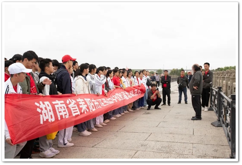 回顾民族的苦难,缅怀先烈的艰辛,同学们在桥头自发演讲,抒发感想。