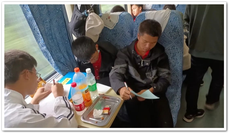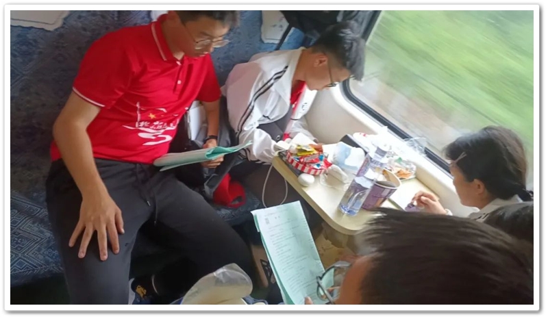 候车室里、返程火车上,不用老师督促,同学们人人都在自发自觉地埋头挥笔。行李箱、座椅上、车桌旁,处处都是挑灯夜读的正源学子们在争分夺秒,或写假期作业、或写励志感想。这趟业已历时七天七夜的北京之行,正在潜移默化地感染着每一位同学的一言一行,润物无声地融入到每一位同学的切实行动当中。