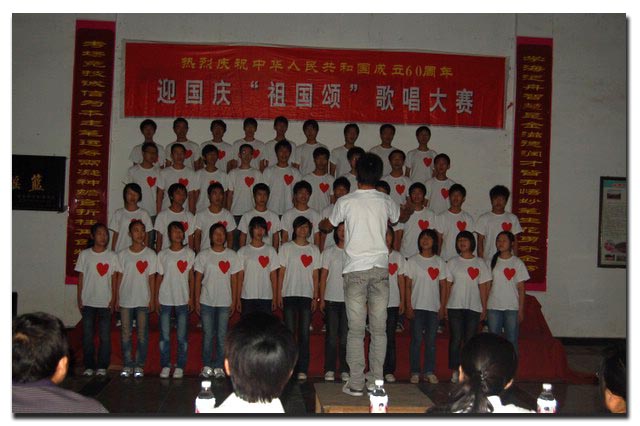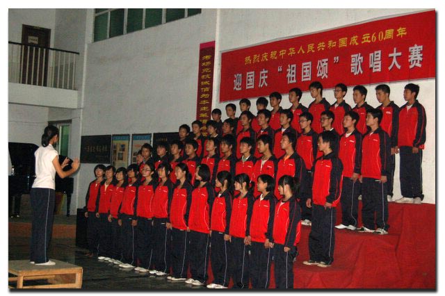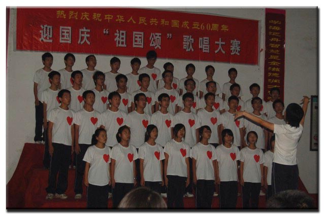 在热烈的气氛中,各班级演唱精心准备的一首首脍炙人口的革命歌曲,用嘹亮的歌声唱出了对祖国的热爱和祝福。歌声博得了大家阵阵热烈的掌声和欢呼声。经过激烈角逐,高21班获得第一名;高25班和高26班获得第二名。