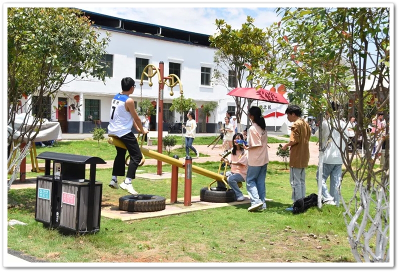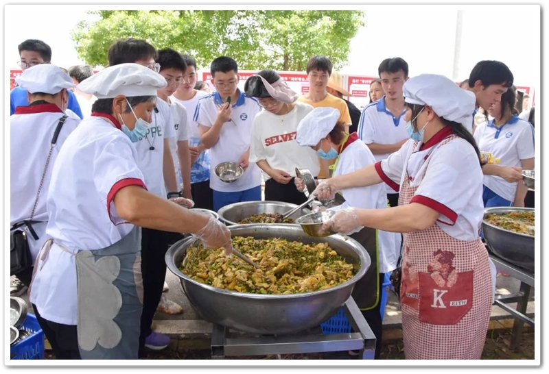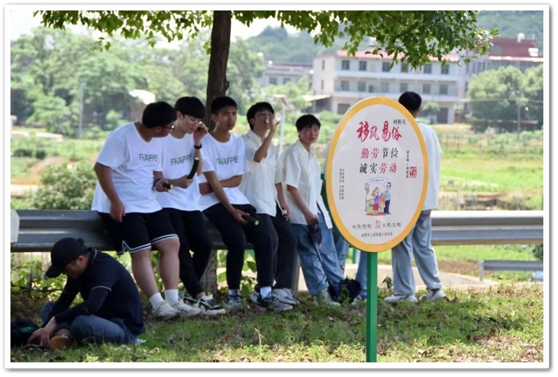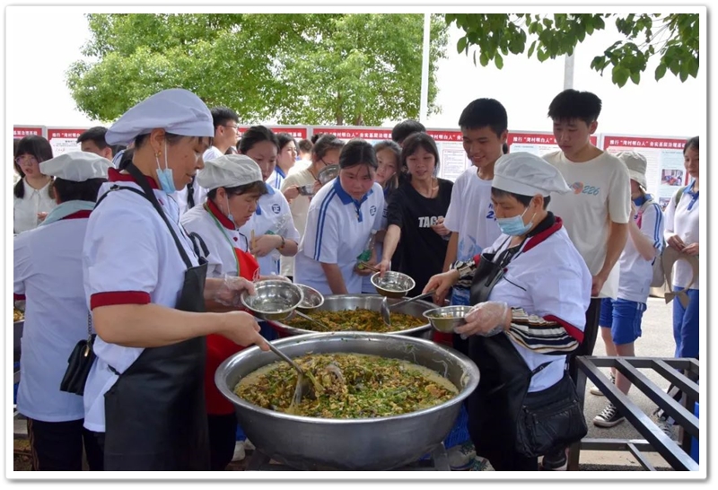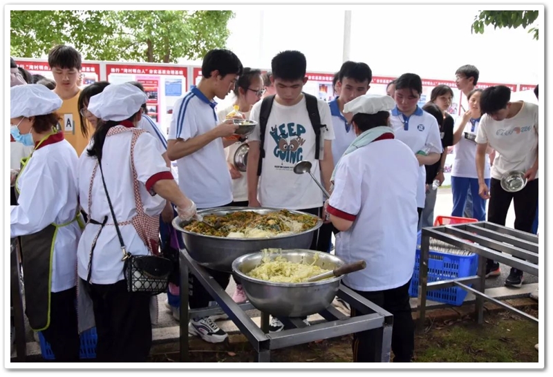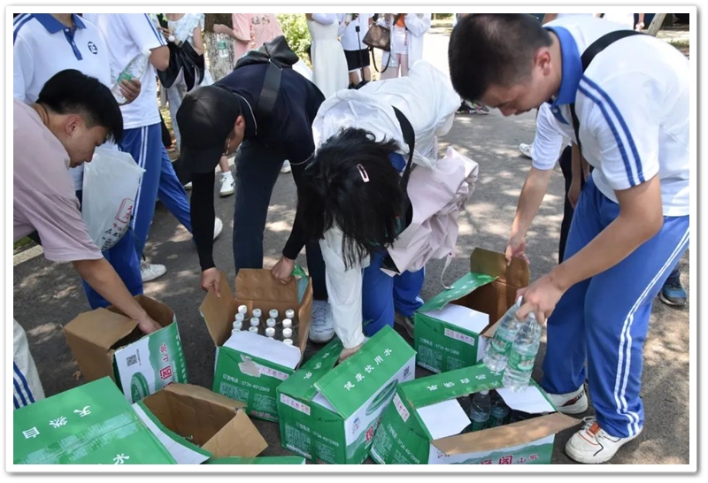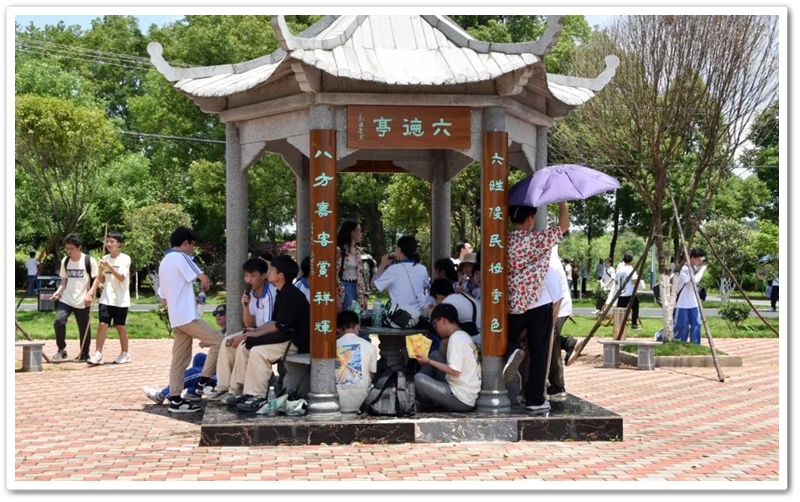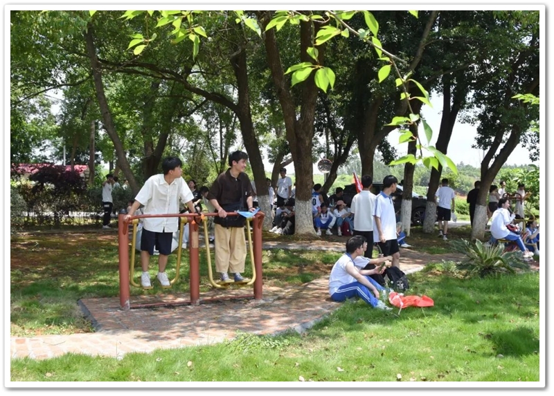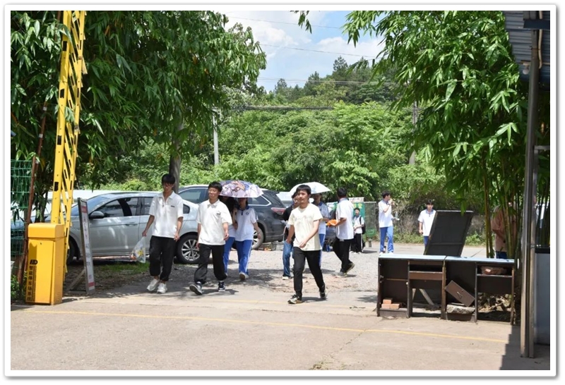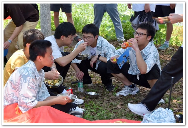 一路欢声笑语,一路轻松惬意,抵达黄泥嘴湾村广场时已近中午。学校食堂恰逢其时运来黄瓜、矿泉水,安置好餐桌餐具。同学们或席地而坐,或闲庭漫步,小憩一小时,野餐过后移步到附近的开发区创新创业园登车返校,养精蓄锐准备迎战高考。