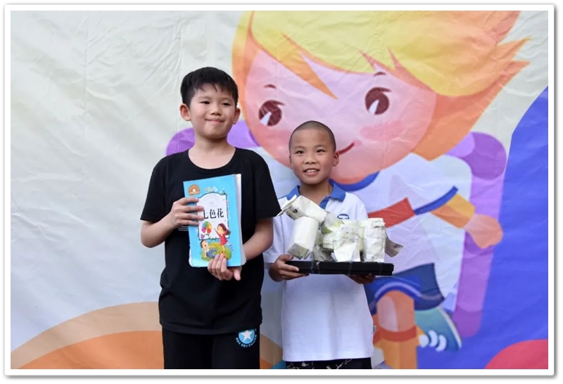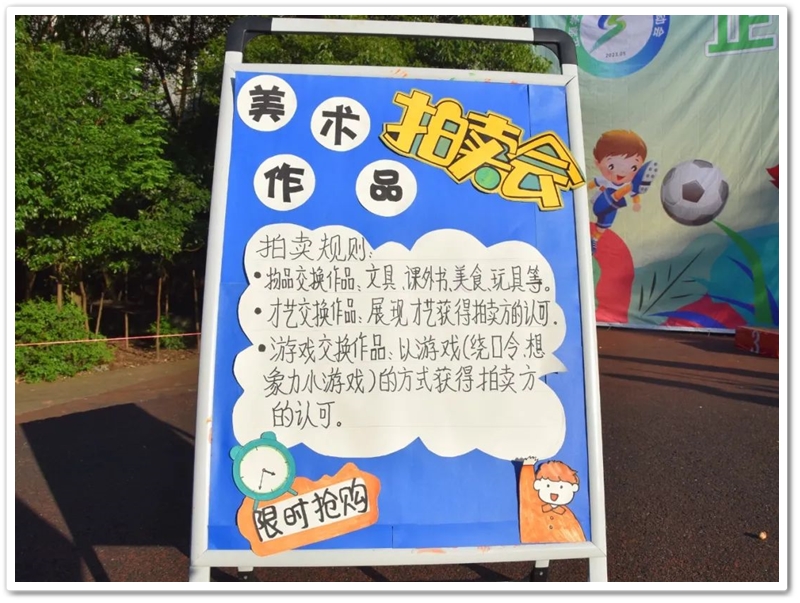 自由拍卖环节中,同学们纷纷拿出自己的美术作品,有低年级可爱画风的《机器人》、《小兔子》,也有高年级环保纸艺作品《小狗》、卡通画《动漫人物》等,看到自己喜欢的作品,竞拍者纷纷拿出物品、才艺参与竞拍。至此,此次活动落下帷幕。