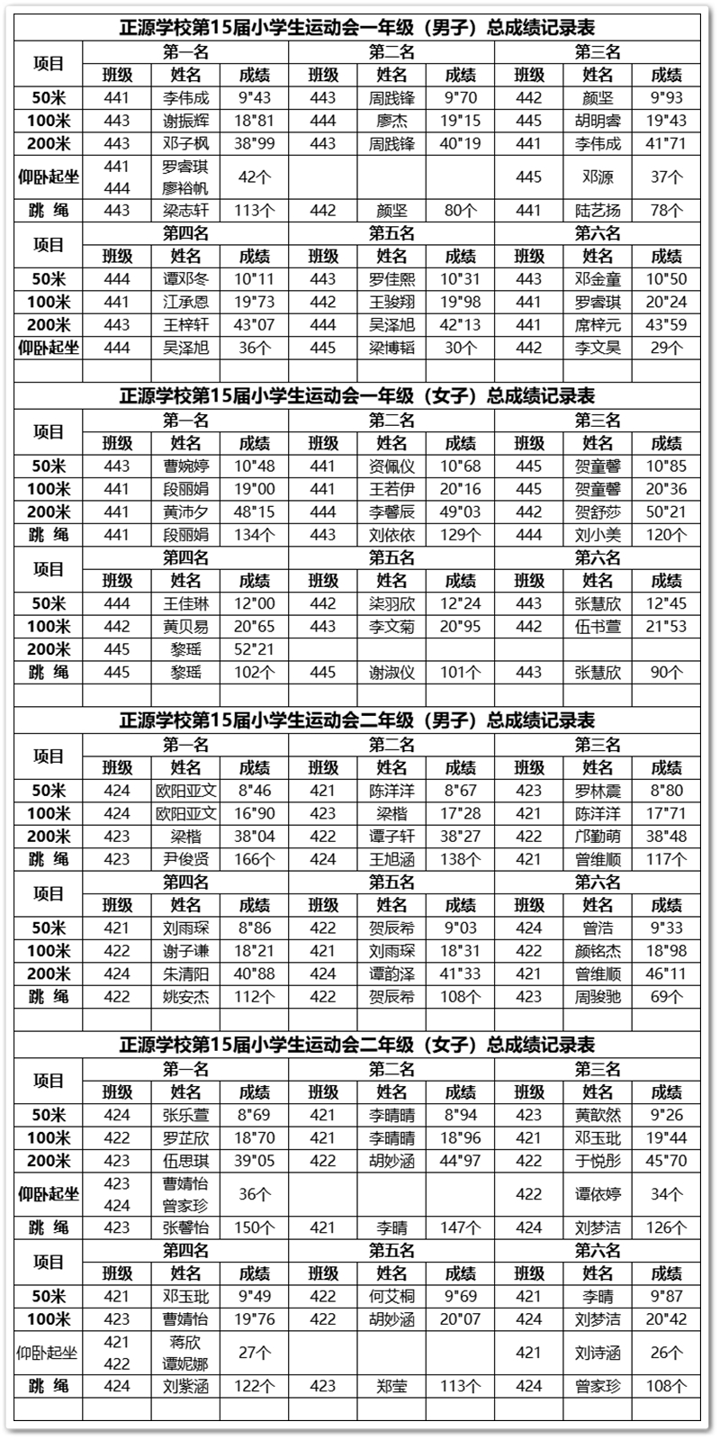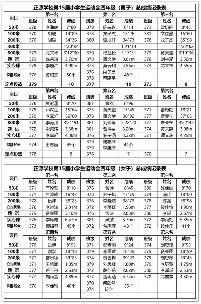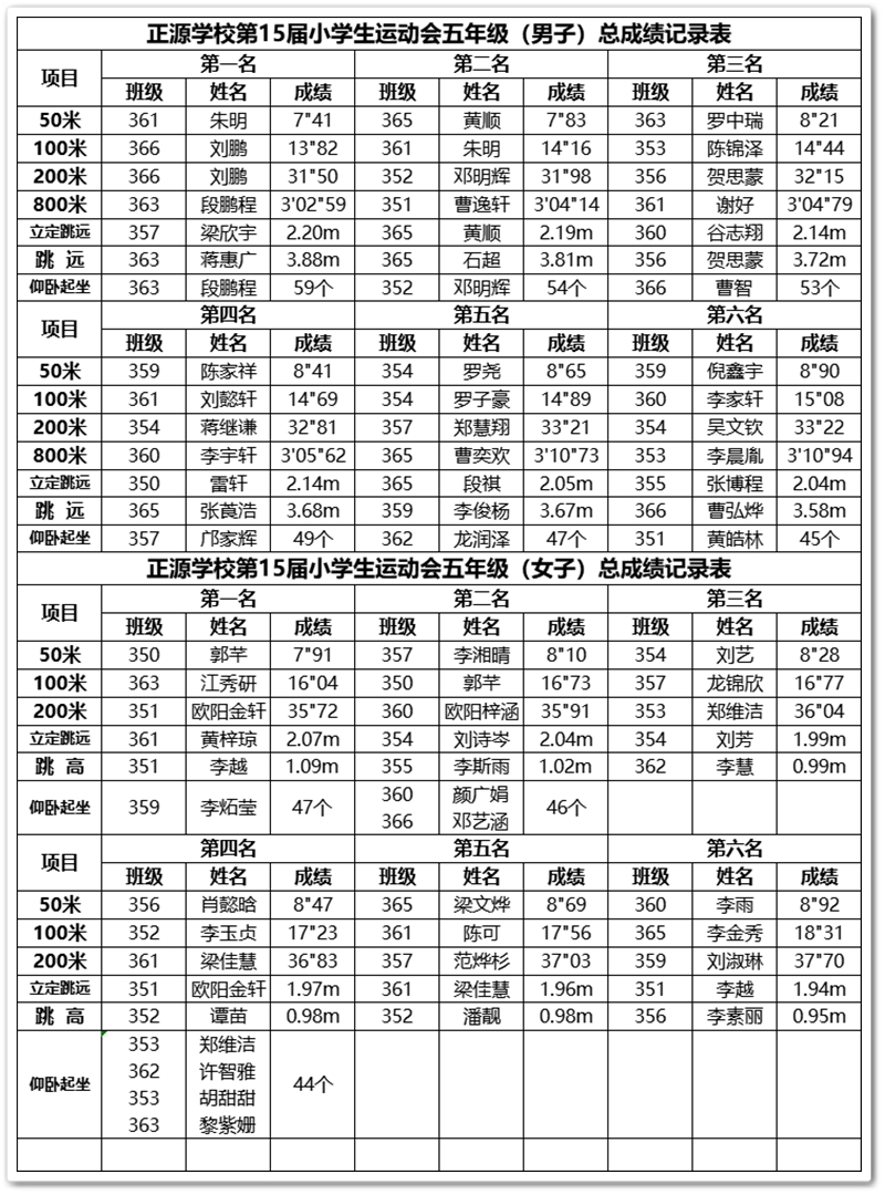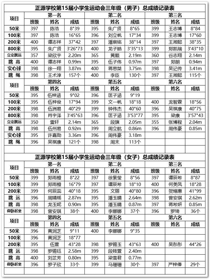 正源学校小学部第十五届运动会赛场快讯(5月30日)