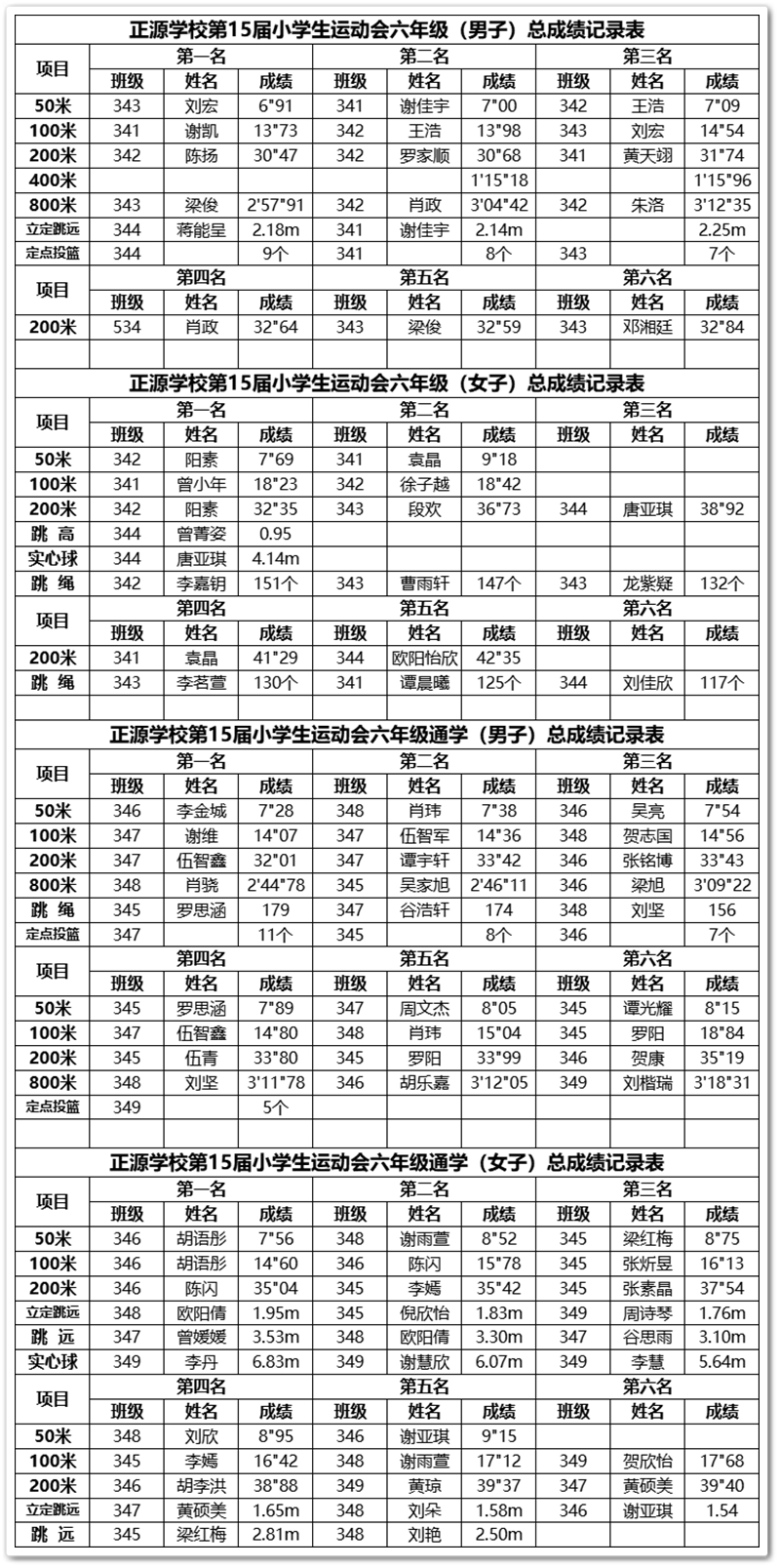今日赛事精彩纷呈,主要项目主要有:跳绳、仰卧起坐、立定跳远、跳远、跳高、实心球、定点投篮、一至六年级男子组50米、100米、200米、800米,女子组50米、100米、200米。