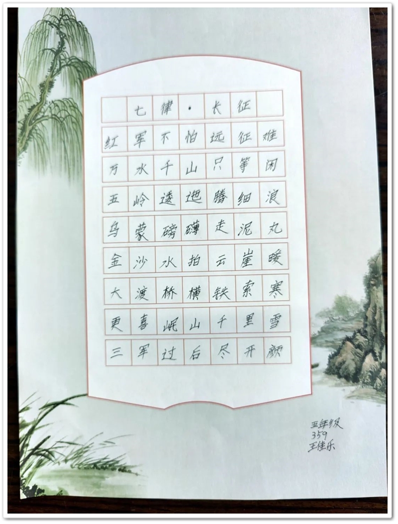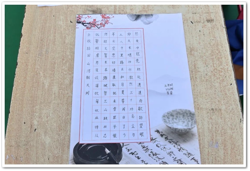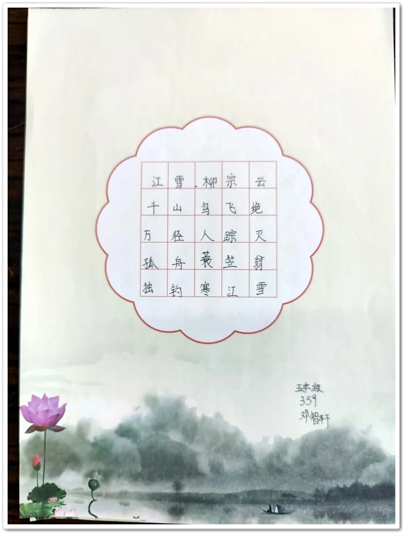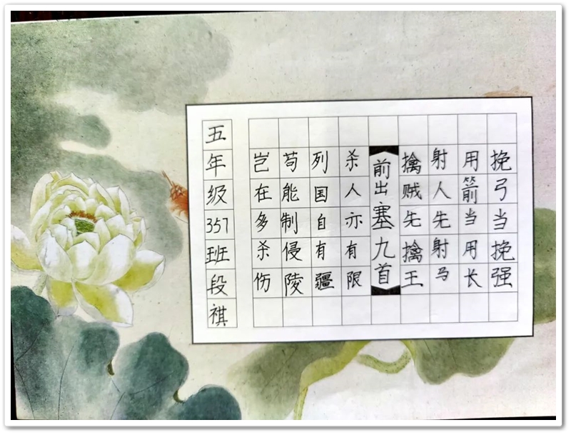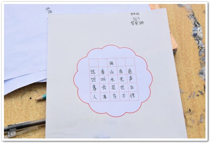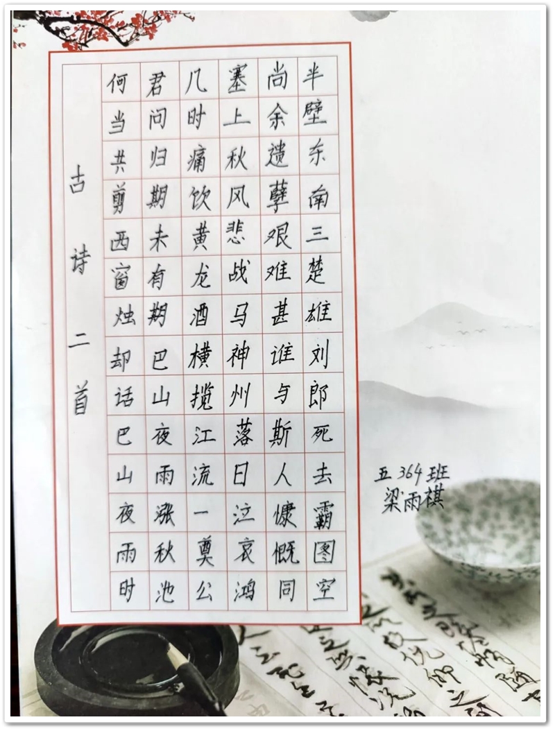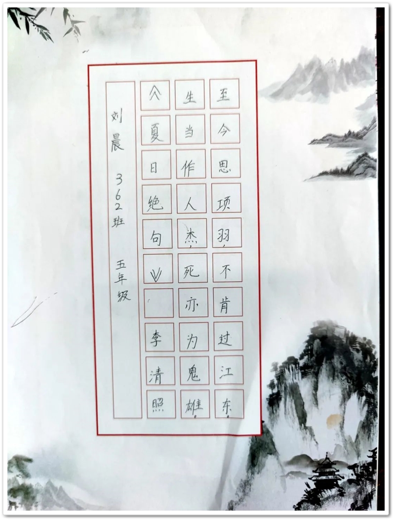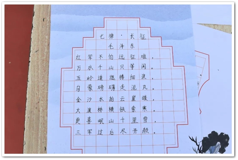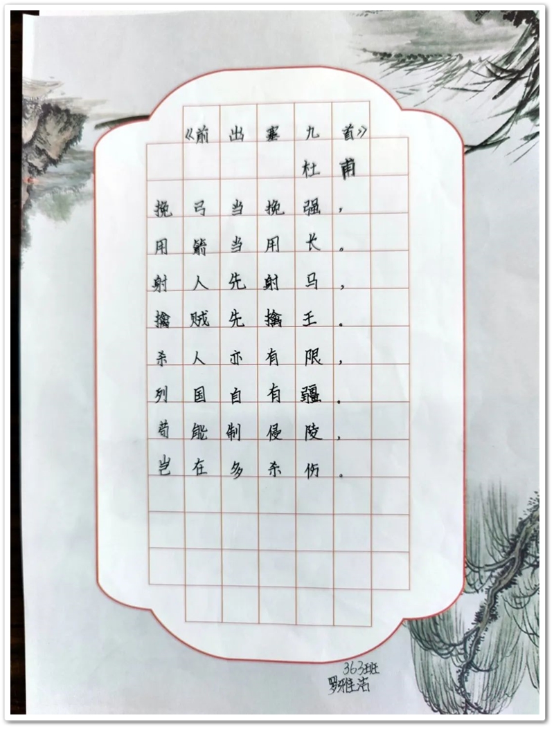 本次活动以誊写古诗词为创作素材。学生们根据比赛内容,一丝不苟地书写着。他们个个坐姿端正、凝神聚气,用心书写一撇一捺,努力展示着自己的书写才能。