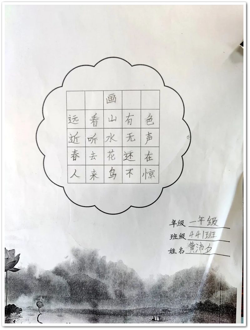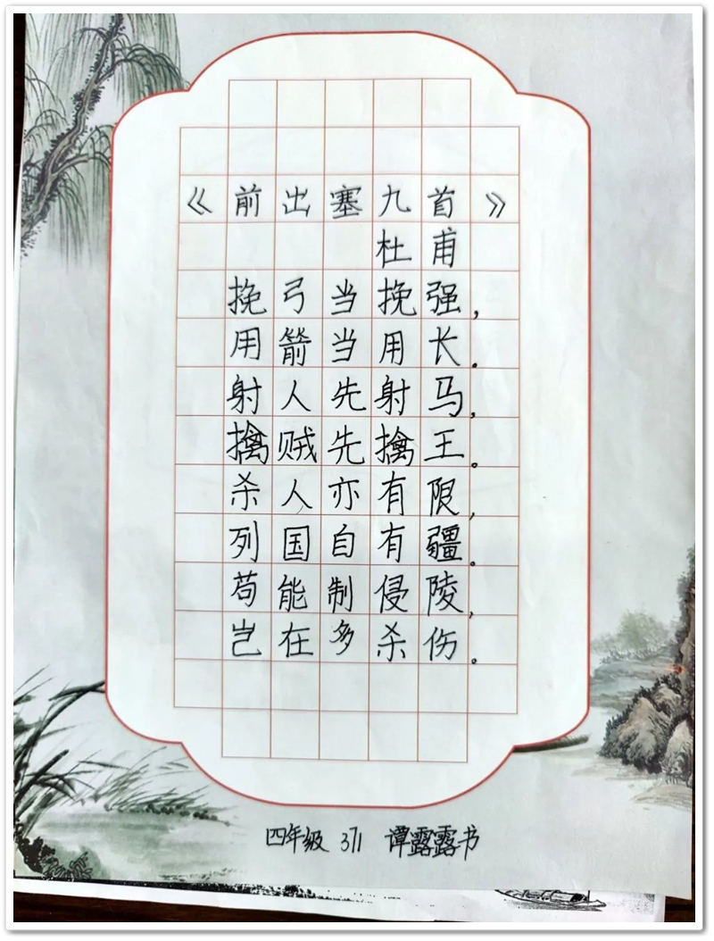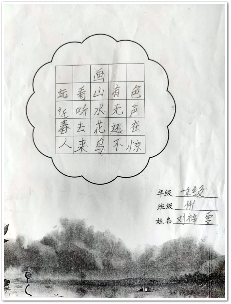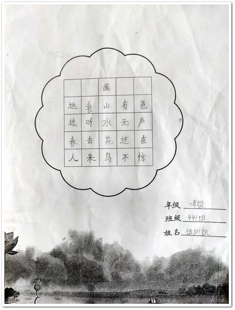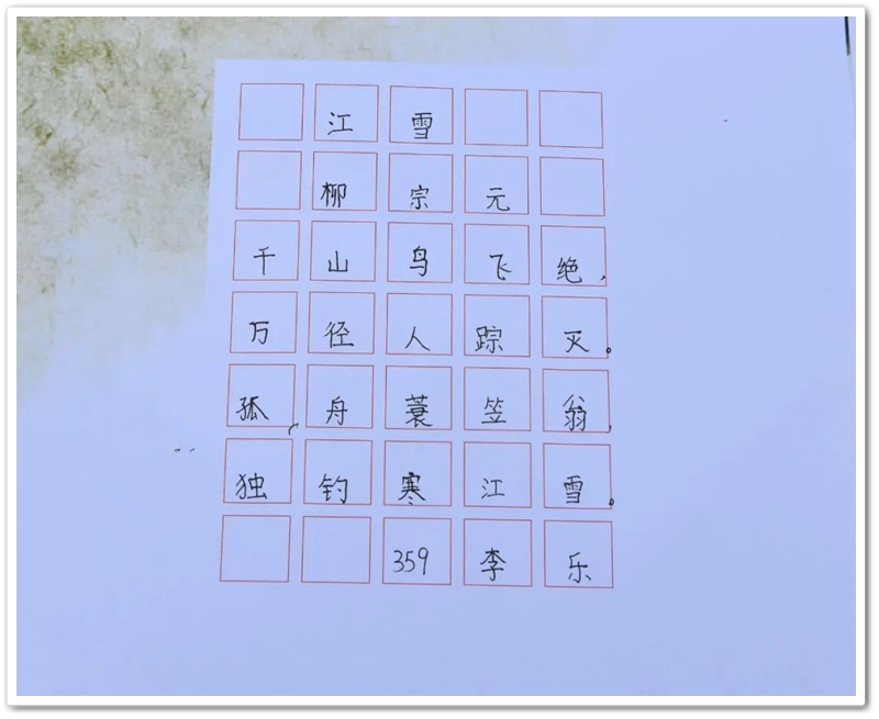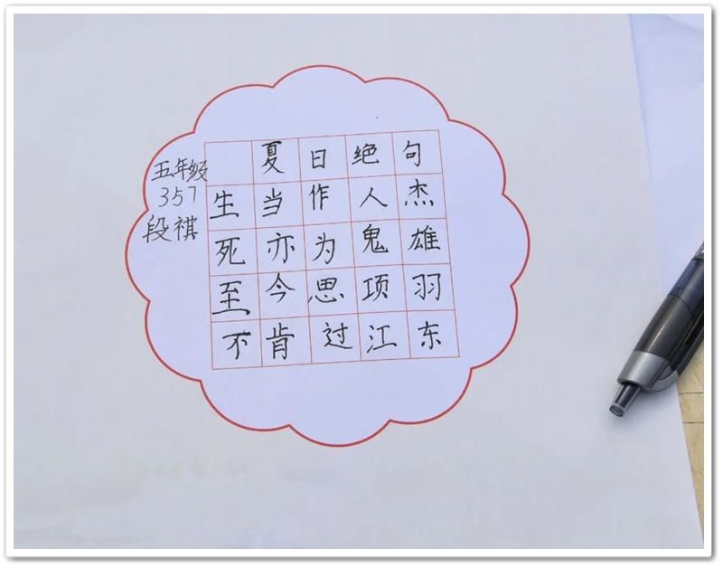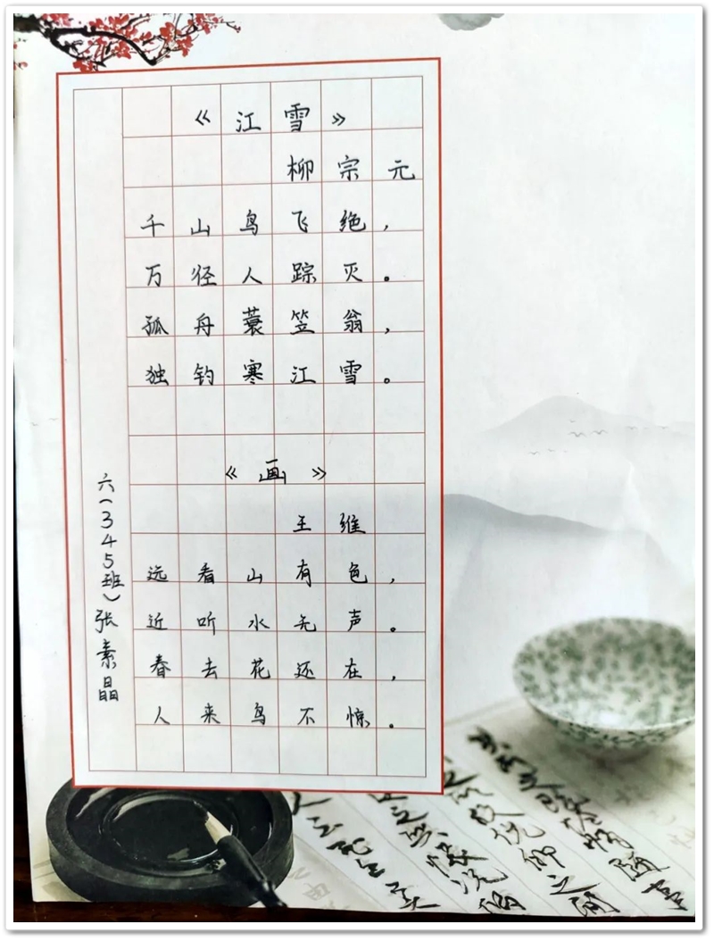本次活动以誊写古诗词为创作素材。学生们根据比赛内容,一丝不苟地书写着。他们个个坐姿端正、凝神聚气,用心书写一撇一捺,努力展示着自己的书写才能。