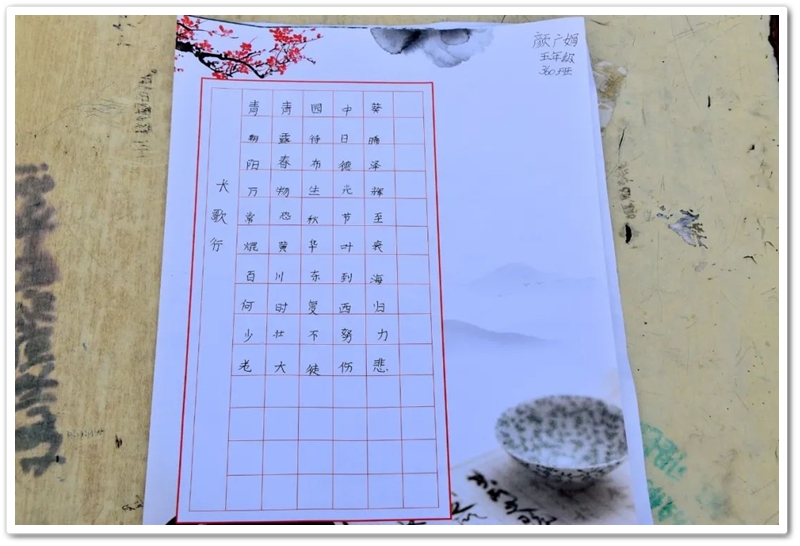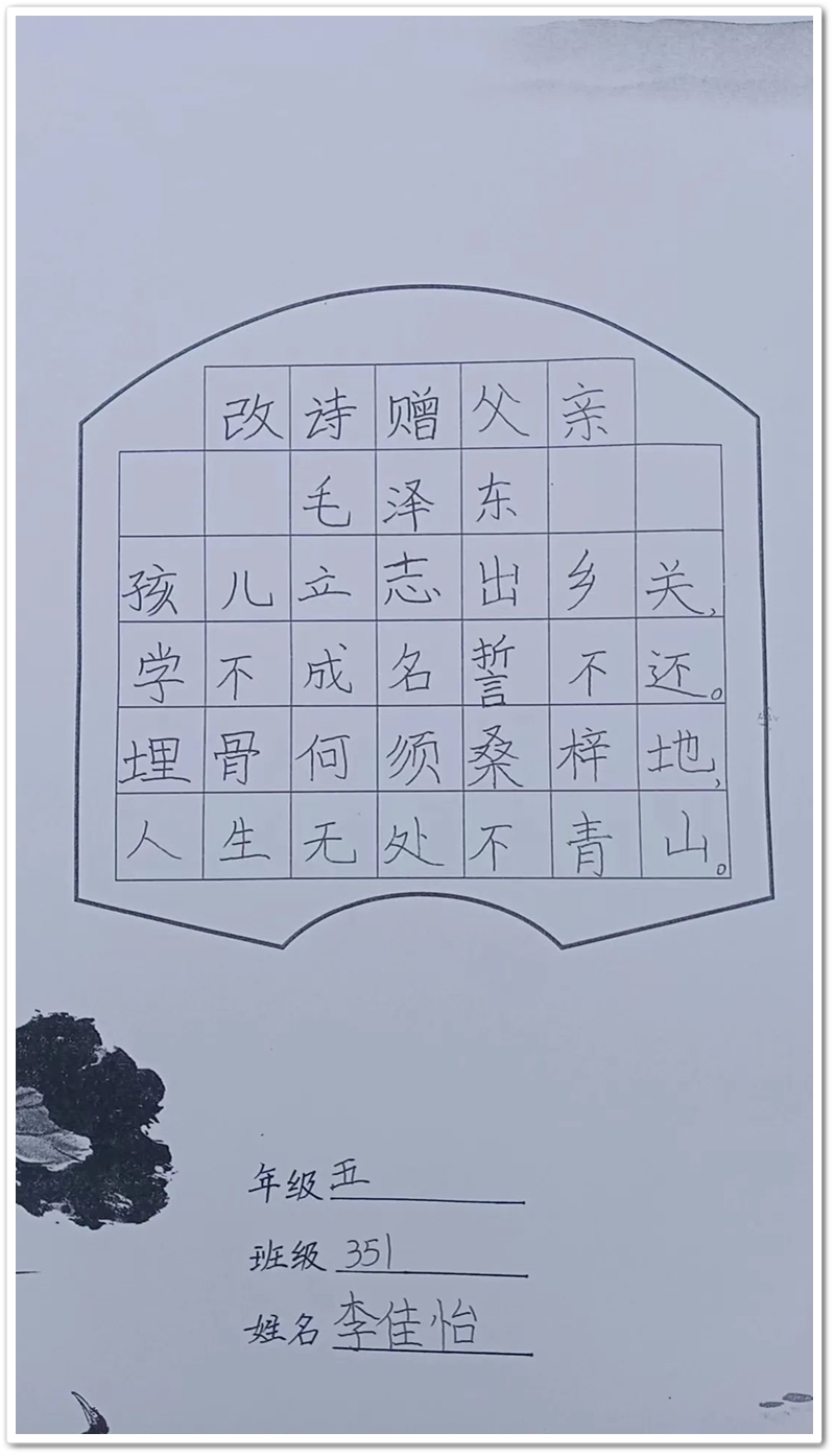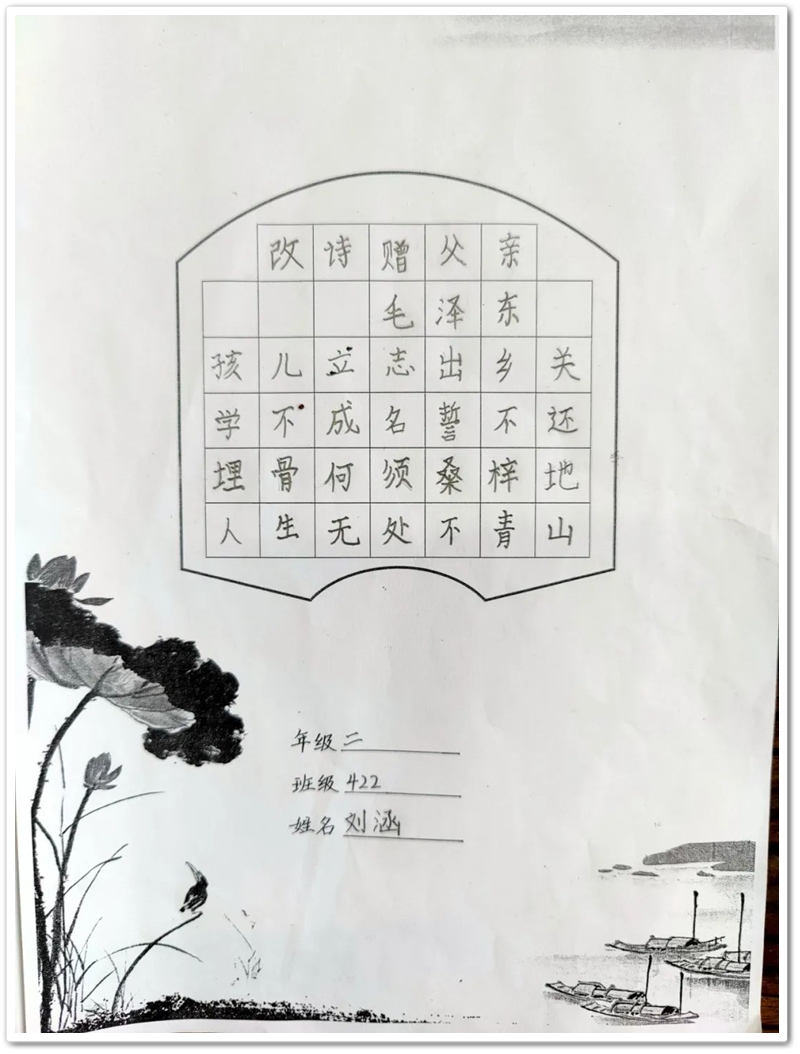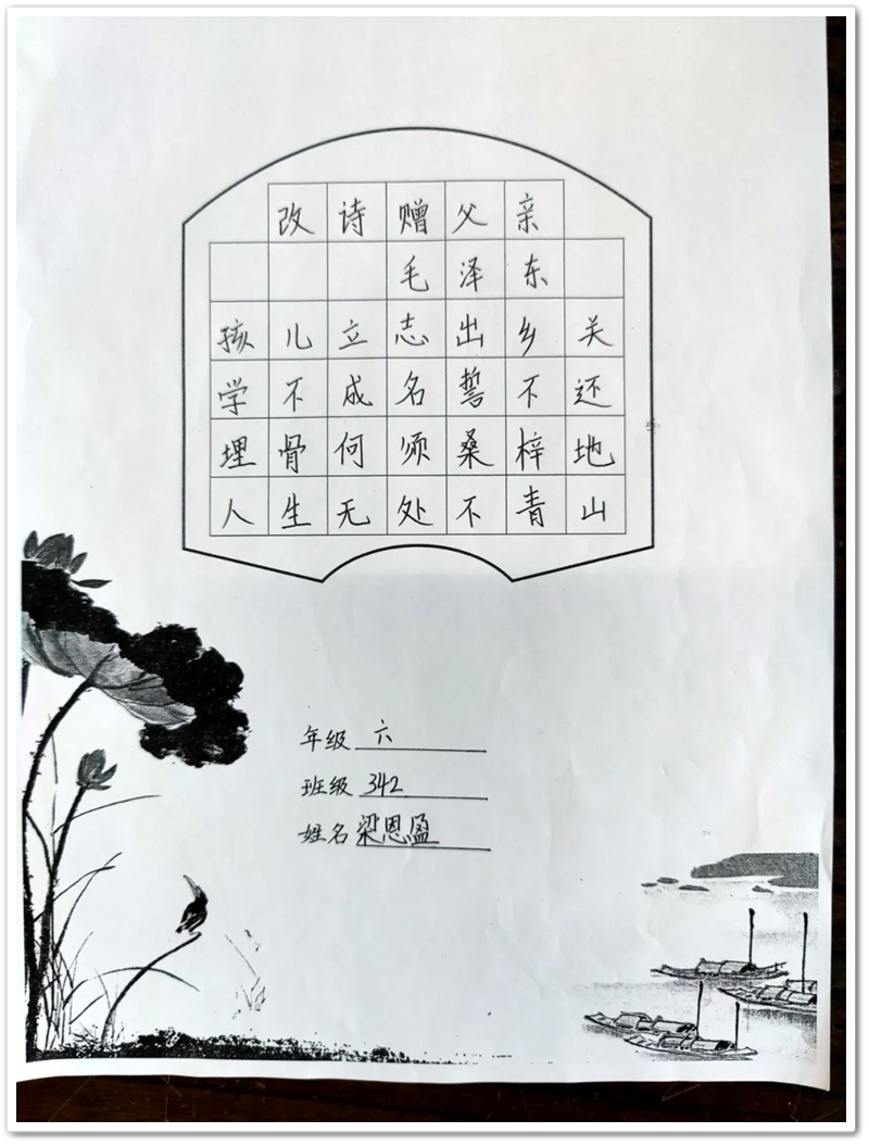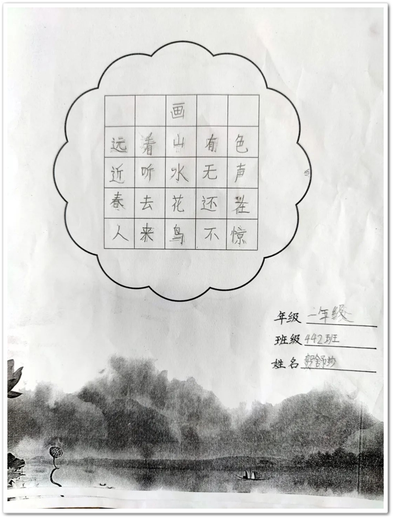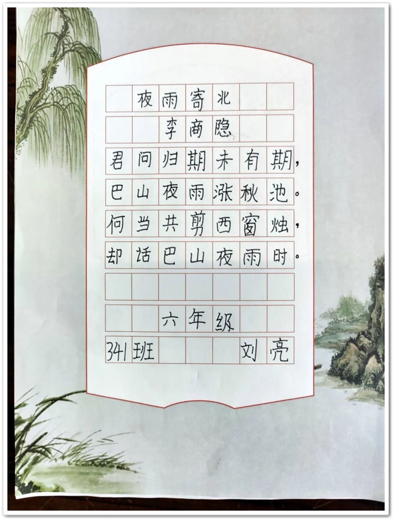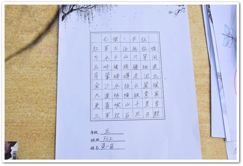 本次活动以誊写古诗词为创作素材。学生们根据比赛内容,一丝不苟地书写着。他们个个坐姿端正、凝神聚气,用心书写一撇一捺,努力展示着自己的书写才能。