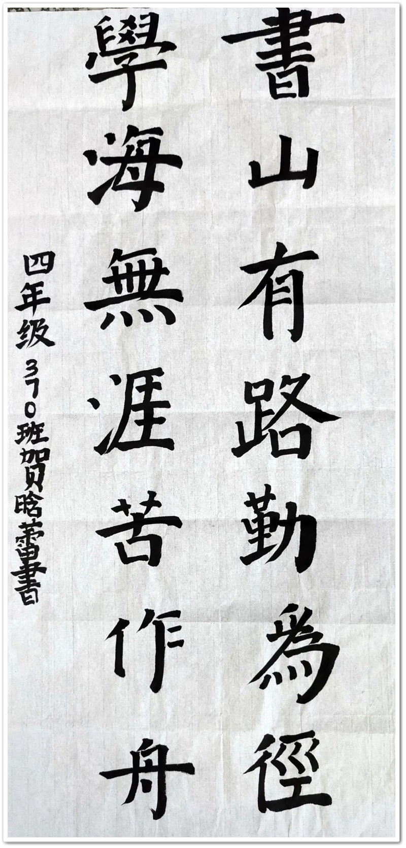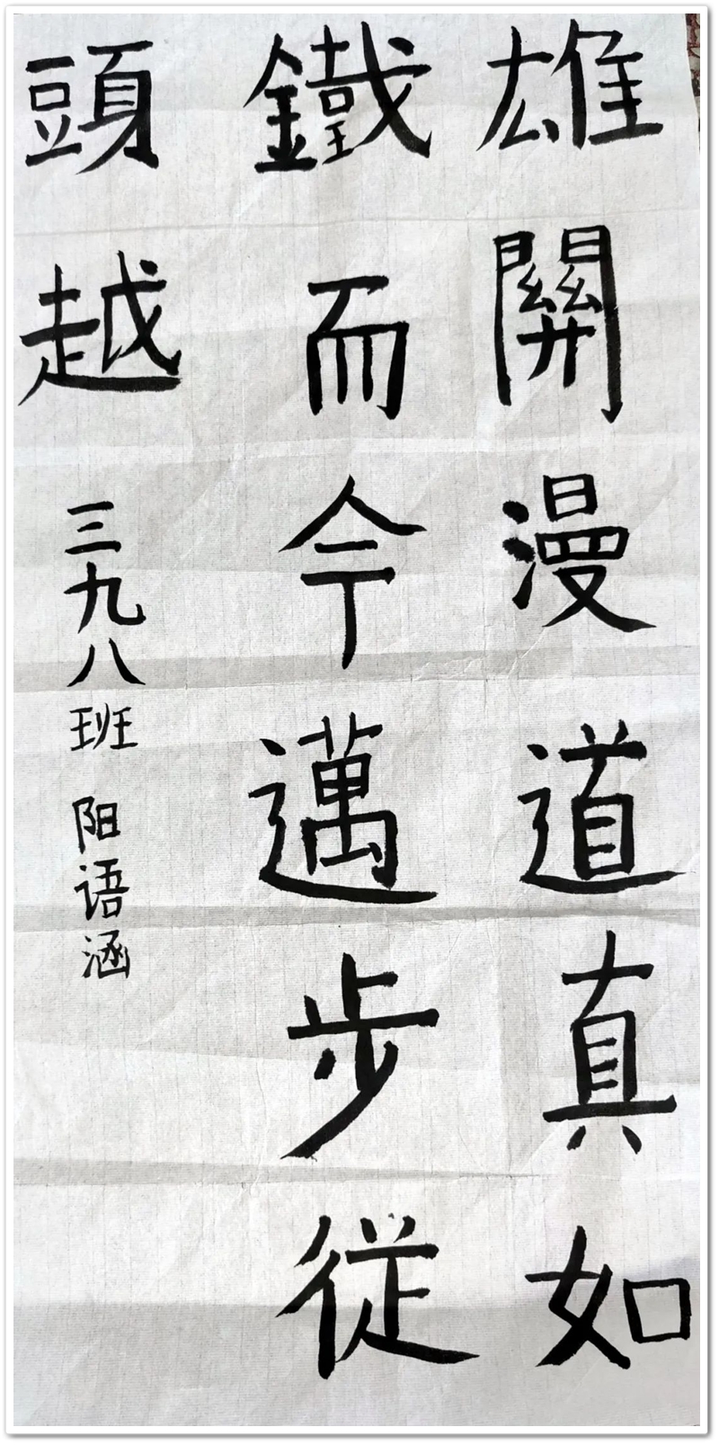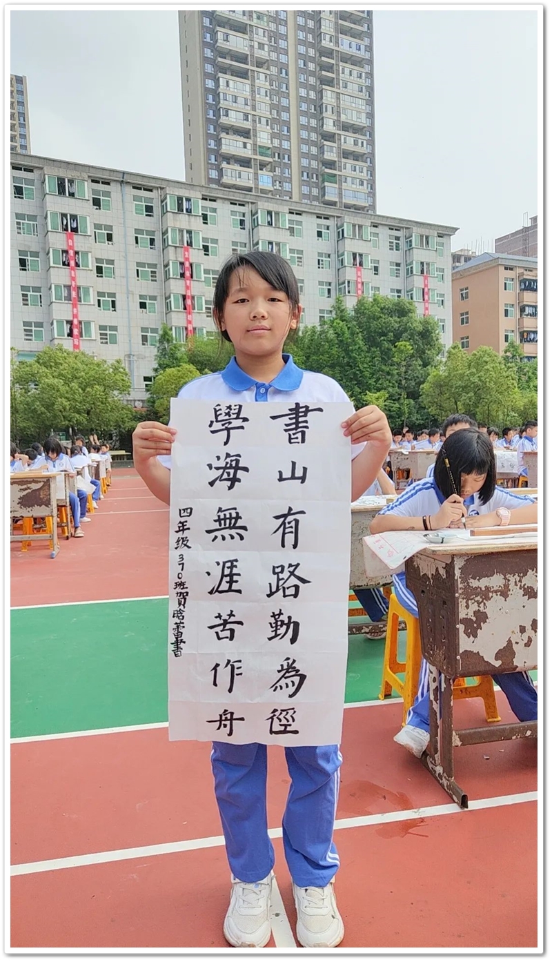 看!一个个美观的汉字从学生们的笔尖流淌出来,犹如一串串美妙的音符,谱成了汉字书写的美妙乐曲。获奖的作品,有的端正秀气,运笔熟练、提按分明,有的舒展大方,运笔流畅,行款整齐,充分展示了学生的才艺,让大家感受到书法的无穷魅力。