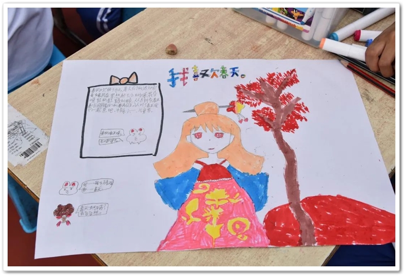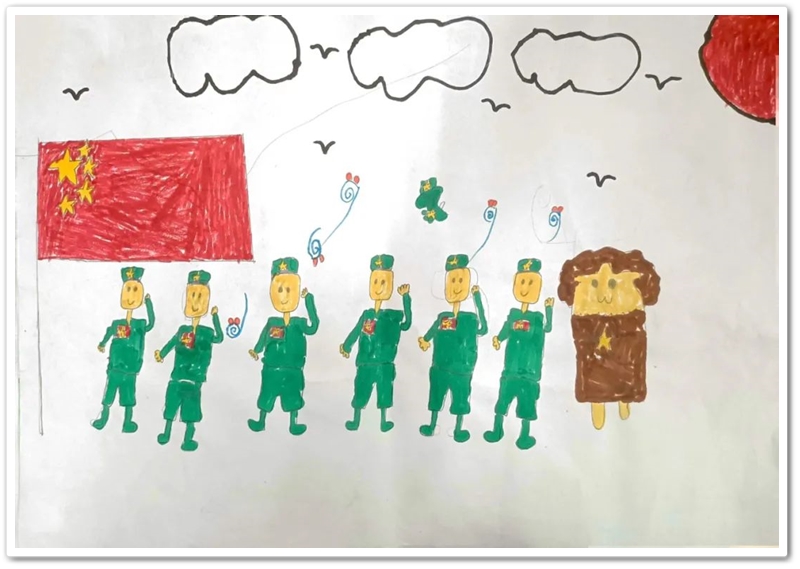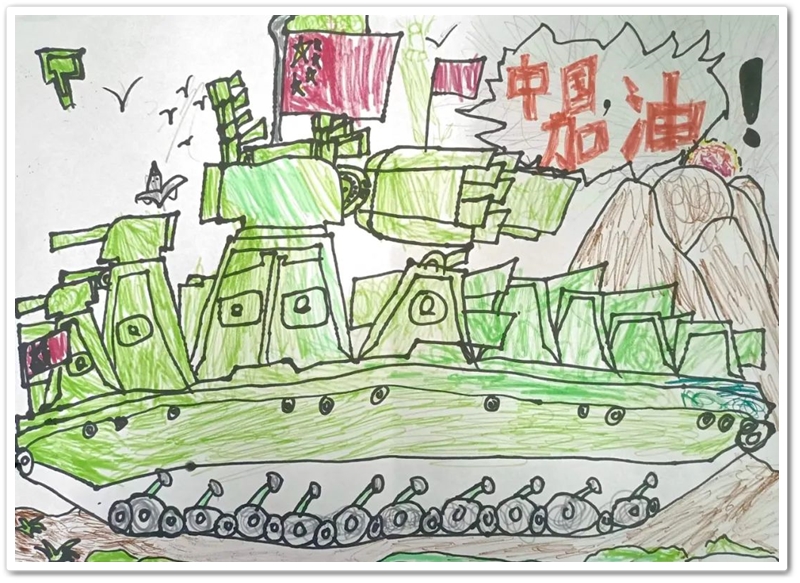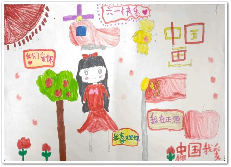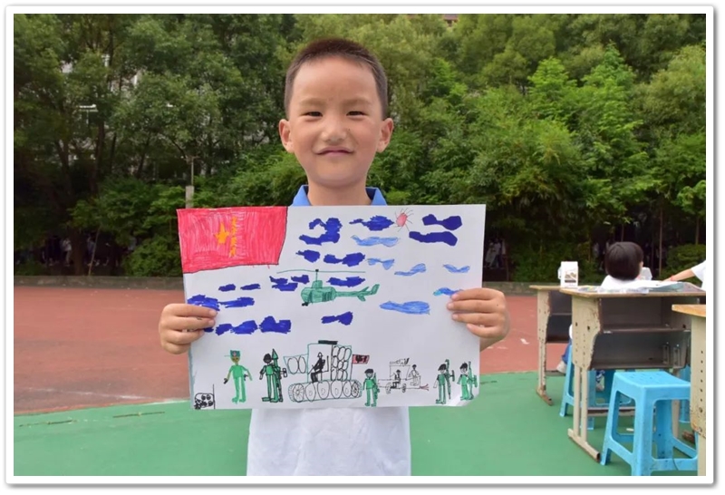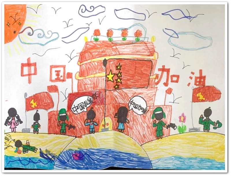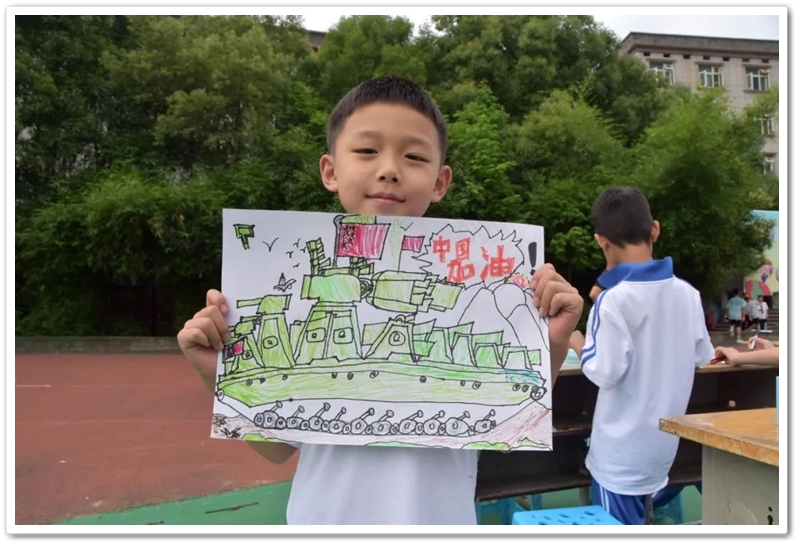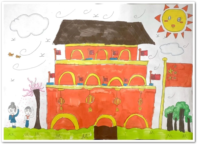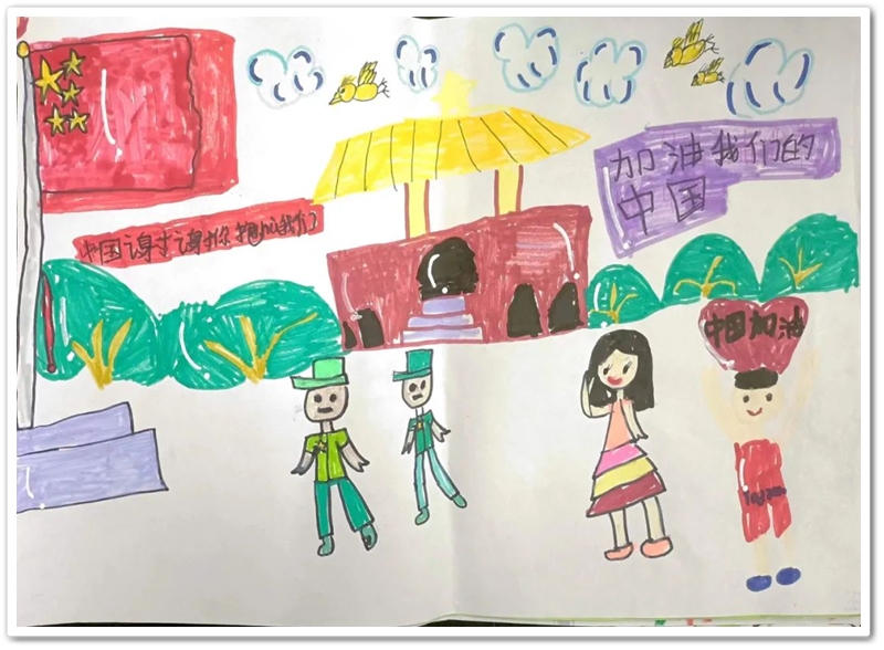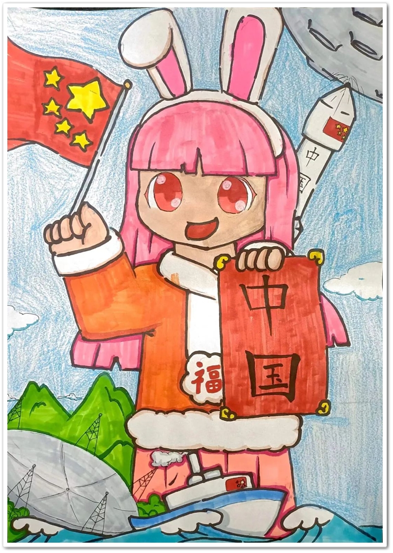 二年级学生充分发挥想象,创意构图,用画笔勾勒成长的点滴,用鲜艳的色彩描绘阳光般的童年。一幅幅富有童趣的绘画表达了对快乐成长的美好愿望和爱国爱党的热情。