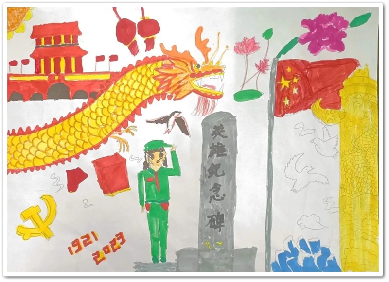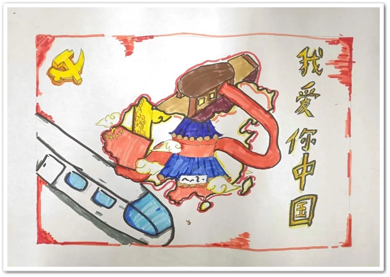 五年级学生作品一幅幅内涵丰富、立意新颖,体现了真善美,传递了正能量,抒发了“爱党、爱国”的情怀,摇曳着孩子们如阳光般绚丽的童心。