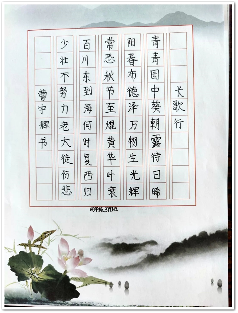 中华文化源远流长,书法就是民族艺术中的一朵奇葩。诗人余光中曾说:“一字一世界,一个方块字便是一片天地。”在一撇一捺挥毫之间,往往蕴含很多道理,透过它我们能看到灿烂的中华文化,感受到先人的智慧才华。窗外有风景,笔下有前途。“提笔即是练字时!”