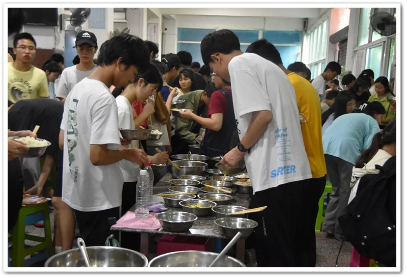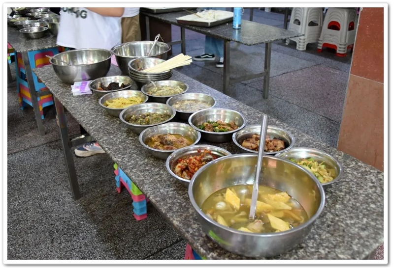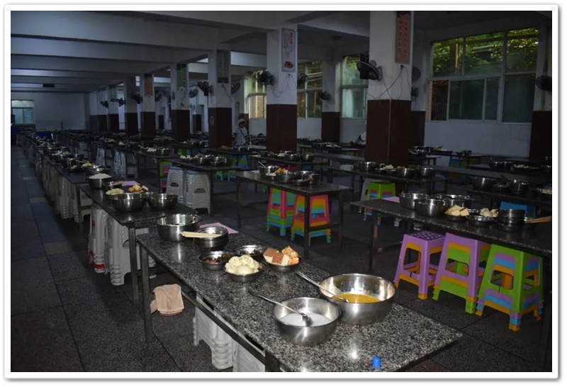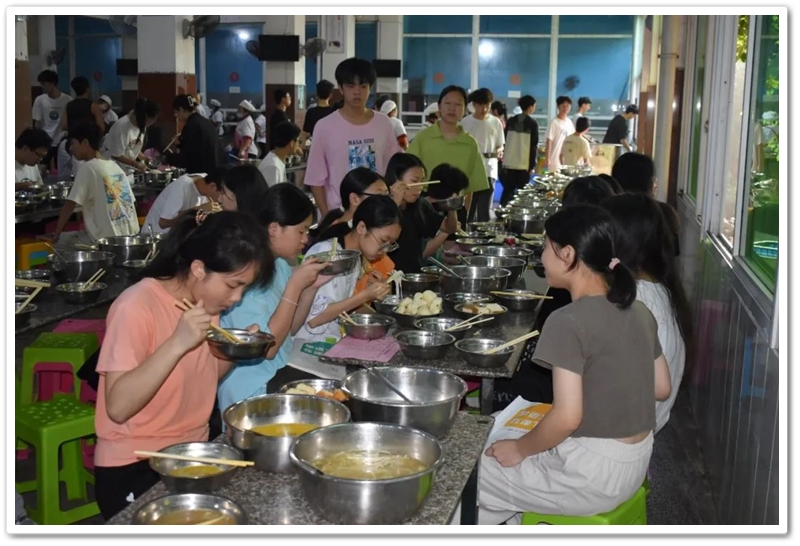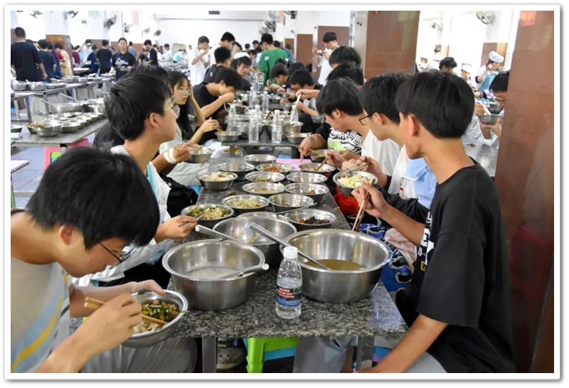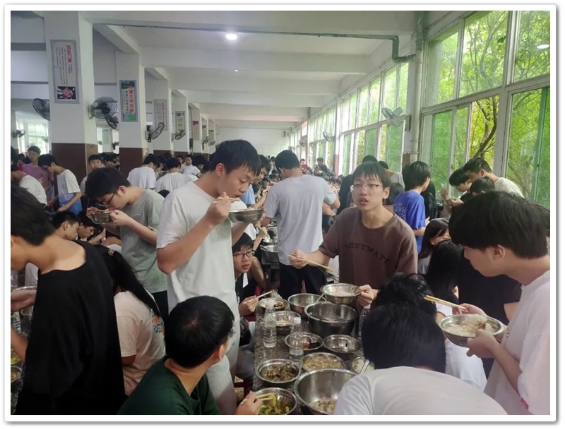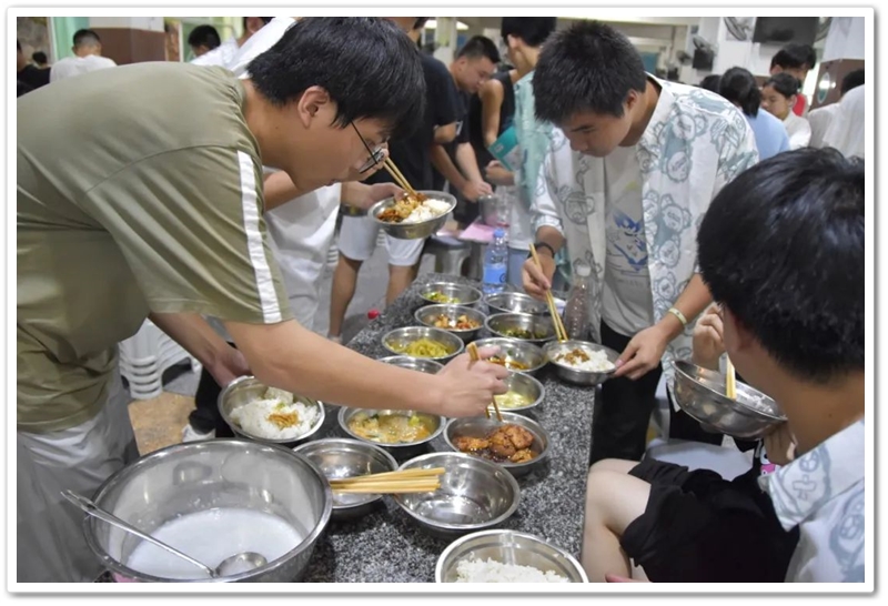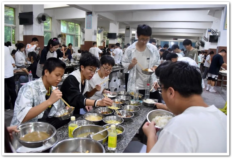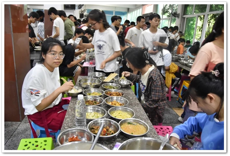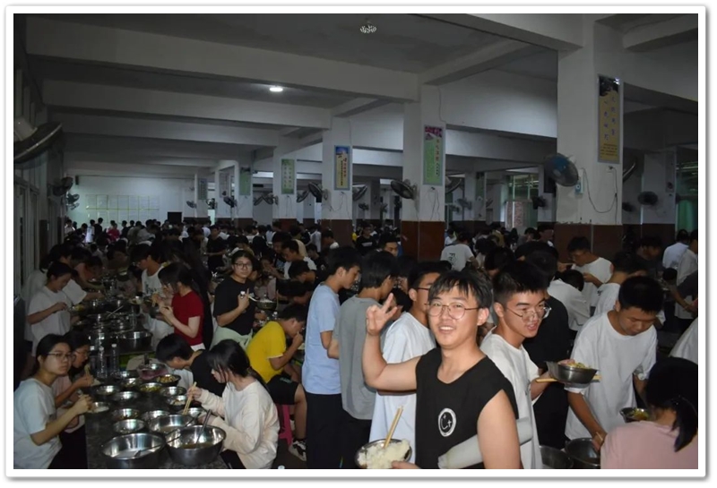 旗开得胜,大巴车队直抵食堂,十二碗土菜一桌的正源高考餐正热气腾腾飘香四溢,静候着孩子们凯旋归来:头菜碗、清乐汤、炒粉皮、熬茄子、抖辣子,耒阳土菜原滋原味。蒸土鸡、蒸扣肉、剁椒蒸鱼……新鲜食材唇齿留芳。一饱口福过后,已近12:40。迅速午睡养精蓄锐,至于到点起床的叫醒事宜,自有值班老师尽心尽职,万无一失。