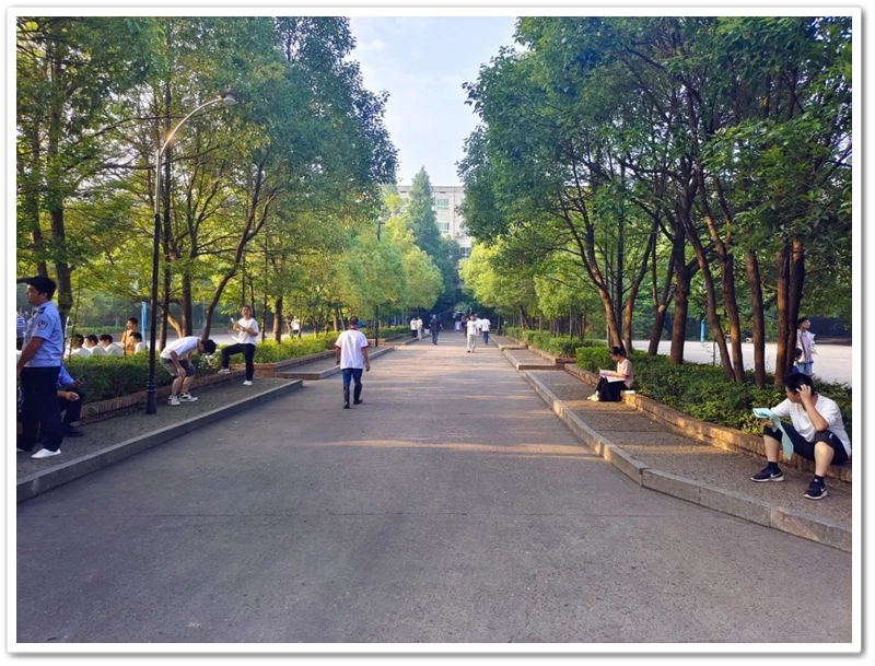 吃过早餐,高三考生们漫步在芳草萋萋的正源广场,散布于小桥流水的太极池畔,捧书本、端笔记,静心诵读,临阵磨枪。
