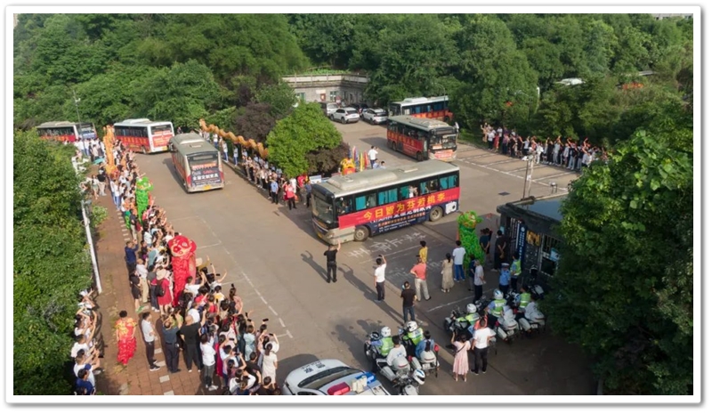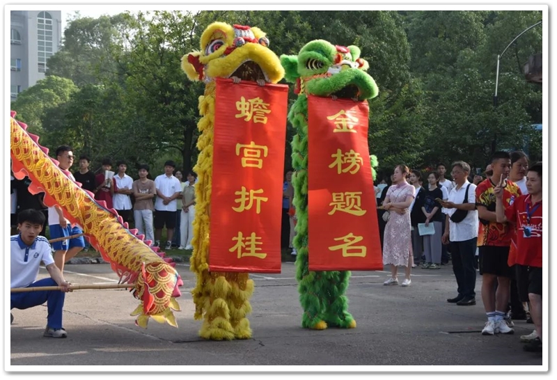 学弟们舞龙舞狮为学哥学姐出征壮行的感人画面,湖南教育电视台于今晚7:35黄金时段播出,致以祝福。
