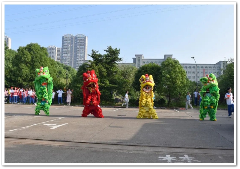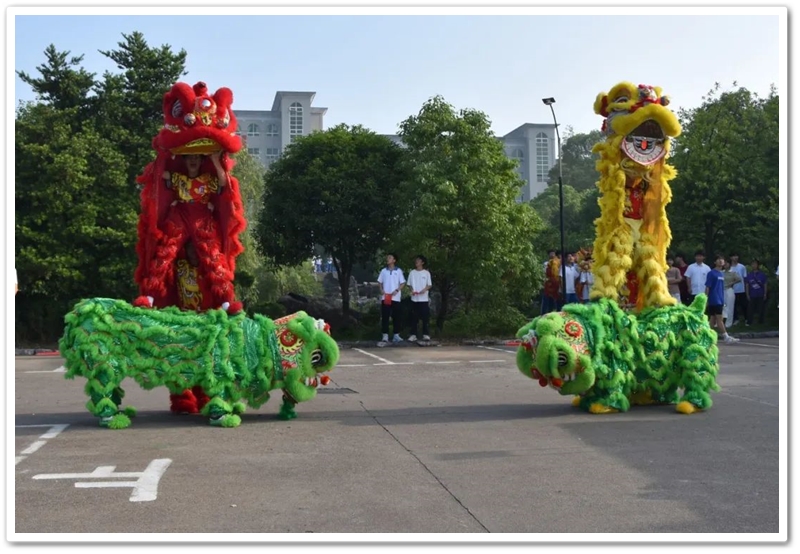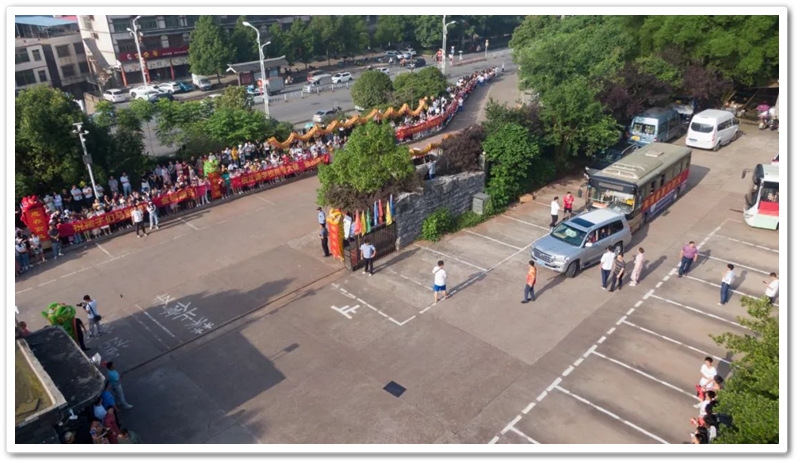 7点30,全体考生陆续登车。正源南门锣鼓喧天,龙腾虎跃。四只憨狮腾挪闯跃,堪称猛虎下山所向披靡。一对金龙翻滚盘旋,恰是鱼跃龙门化鲤成龙。薪火相传的正源龙狮队在一派生龙活虎的金碧辉煌之中,喜气洋洋为学哥学姐们征战高考壮行助威。