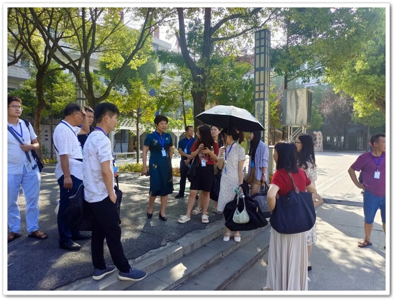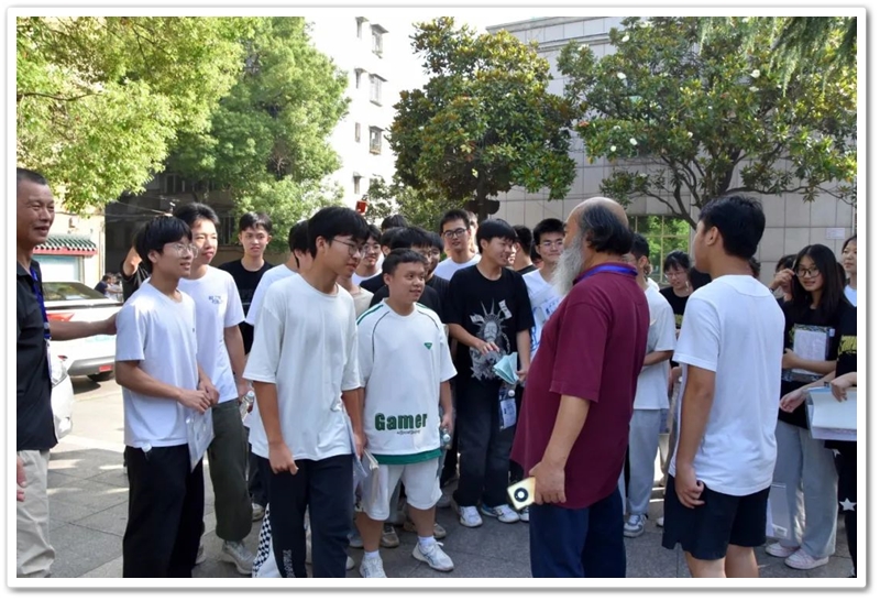二中校门内广场,率队出征的罗校长笑容满面,给孩子们加油鼓劲。