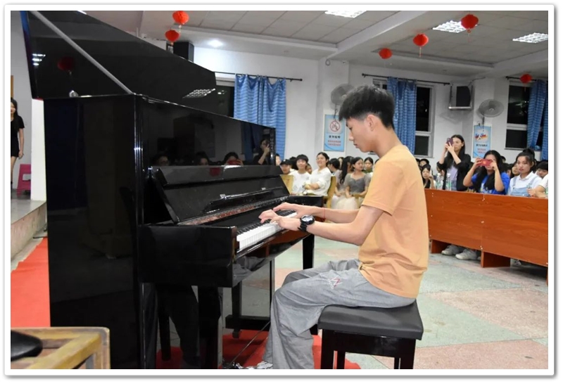 紧接在后的是罗怡、刘慧玲等四位同学合唱的《房间》,几个女生借歌词诉说着自己的心事。刘礼凯同学和刘纪翔同学分别演绎了两首钢琴独奏曲《练习曲》《森林波卡尔》,指尖飞舞,琴声悠扬,犹如潺潺流水净化心灵,现场听众躁动的心也逐渐平静。蒋雅柔同学的《诀爱》、文佳慧和李丹两位同学的古筝合奏《年轮》,熟悉的旋律让同学们不禁跟着轻轻哼唱。