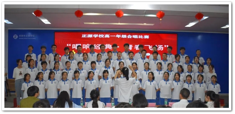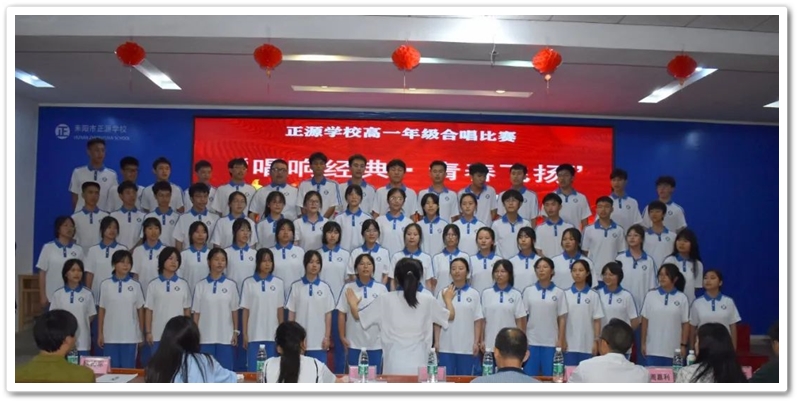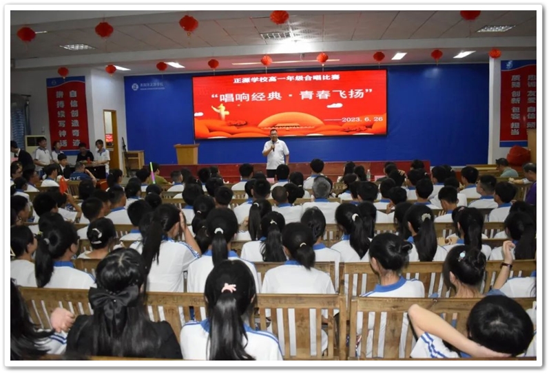 夏日风暖,六月花香。为隆重纪念七一建党节,凝聚青春奋进力量,丰富校园文化生活,激发全校师生爱党、爱国、爱校的深厚情怀,正源学校高一年级于2023年6月26日晚在报告厅举办了一场以“歌唱经典,青春飞扬”为主题的合唱比赛。