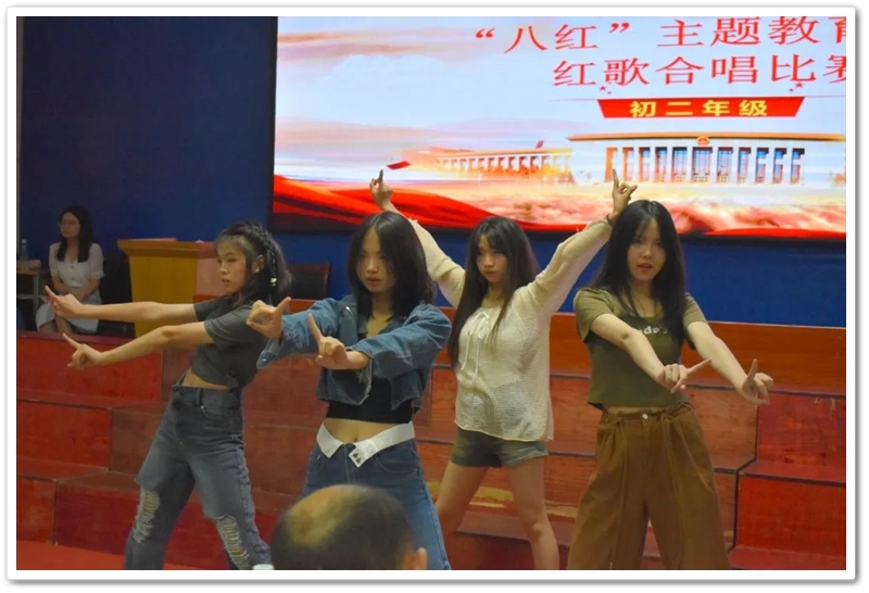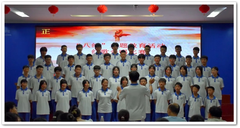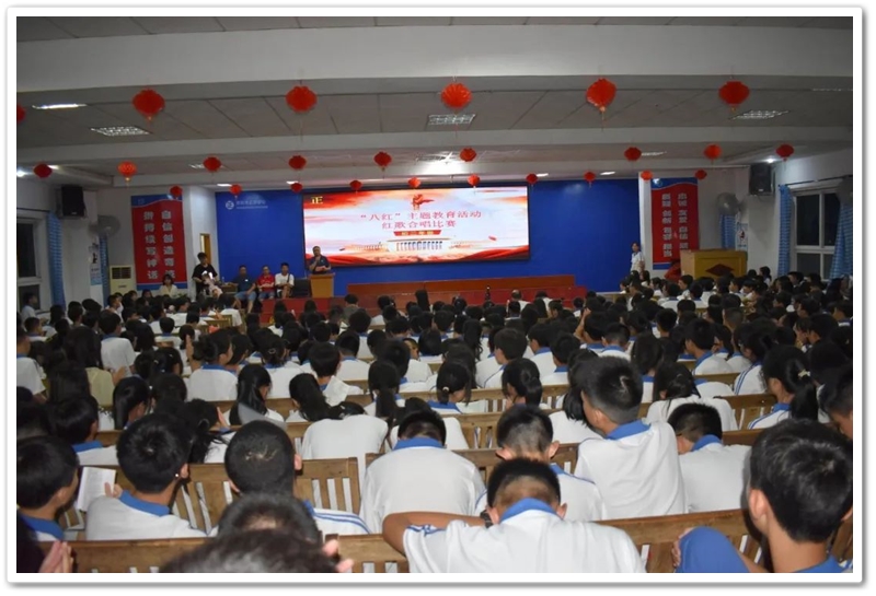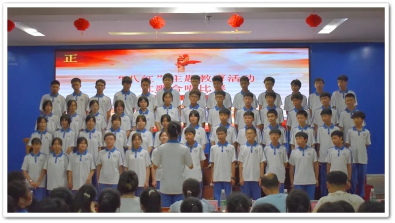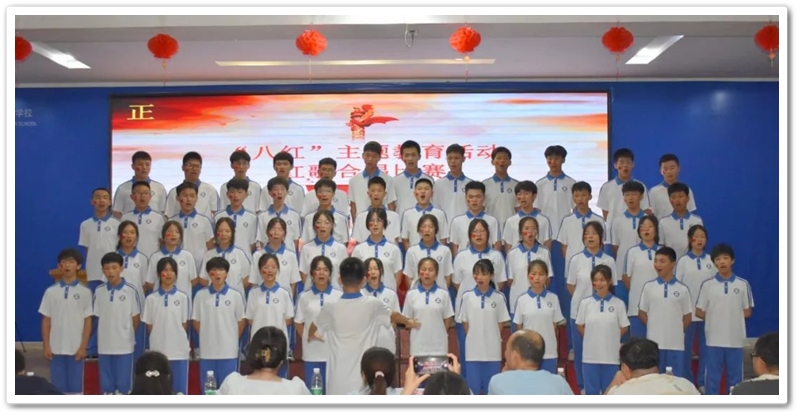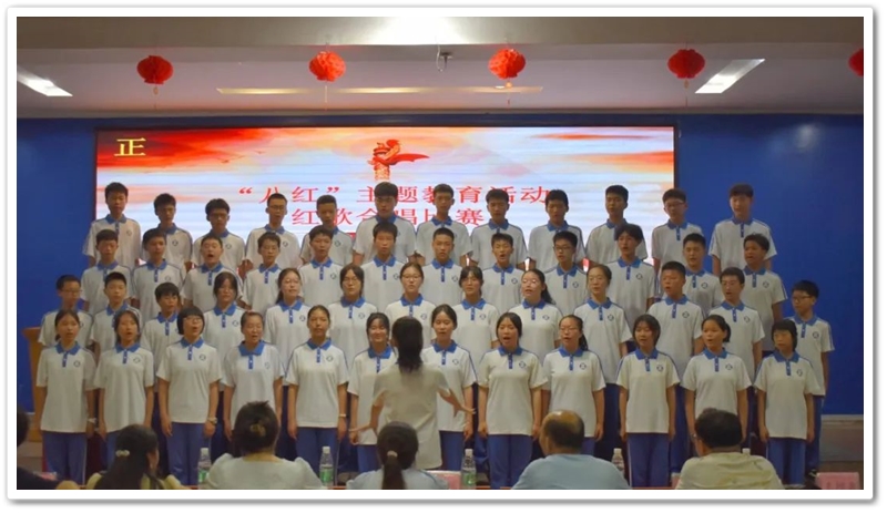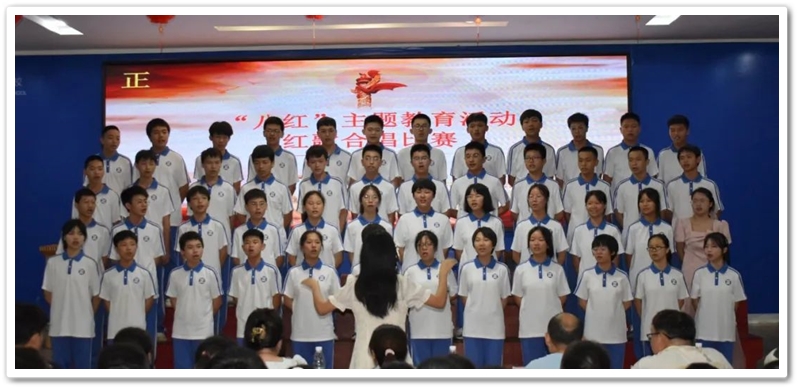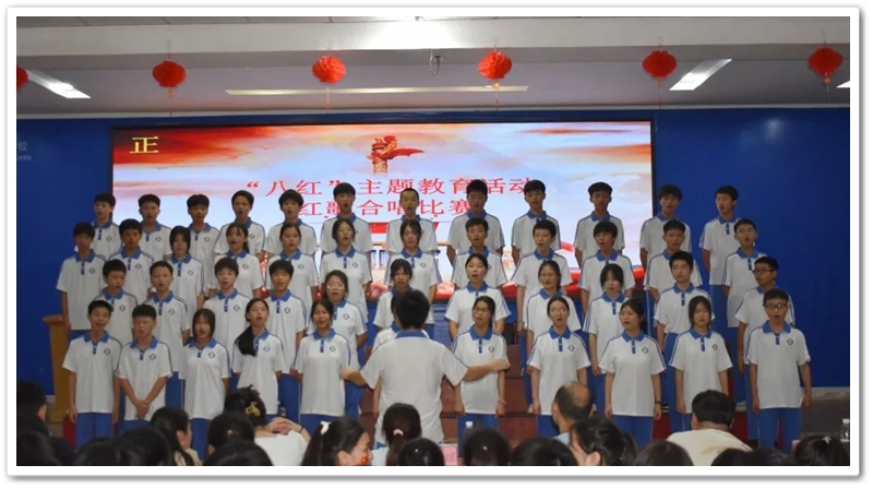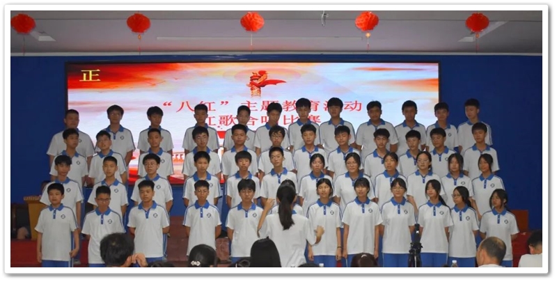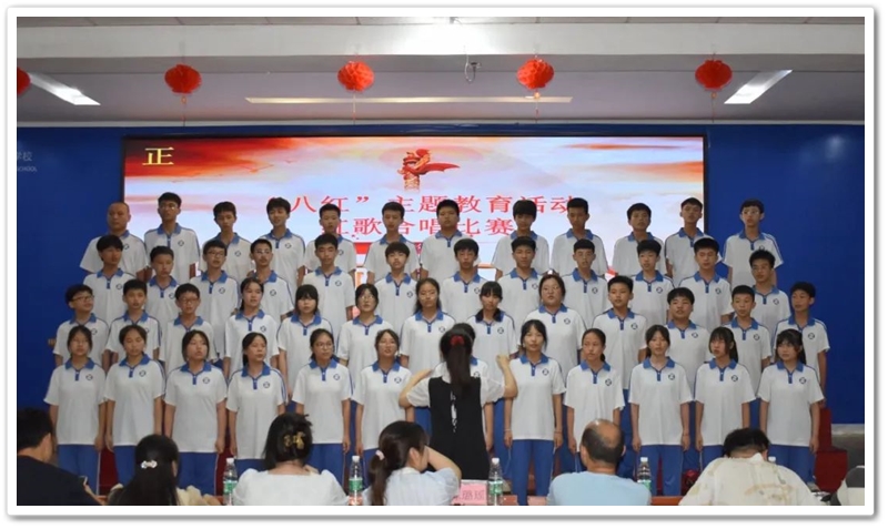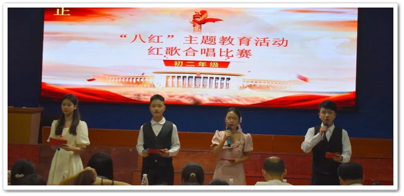 “绿树阴浓夏日长,楼台倒影入池塘。”六月的校园里有教室里溢出的朗朗书声,有操场上传来的喝彩声,有潜藏在満塘绿荷下的阵阵蛙鸣,还有时而悠扬时而铿锵的歌唱声。值七一建党节来临之际,初二年级全体师生积极响应学校“红色文化进校园”的号召,于6月22日、23日晚在学校报告厅举行“八红”主题教育活动——红歌合唱比赛。