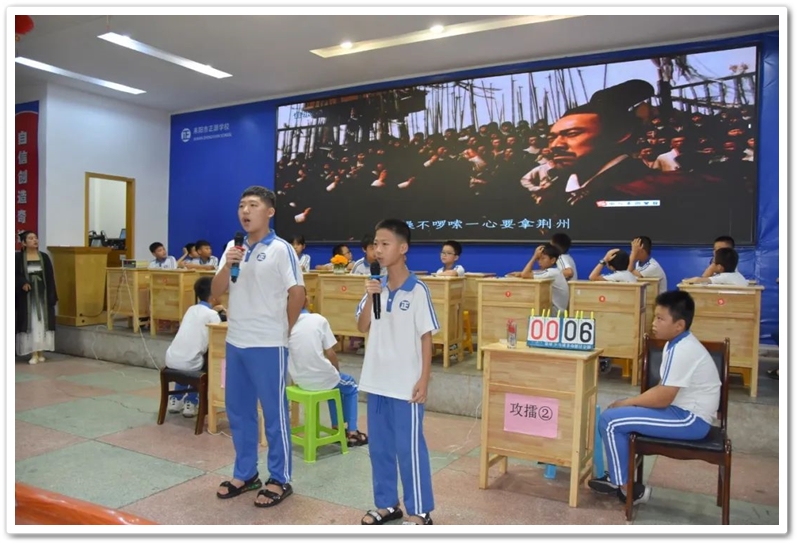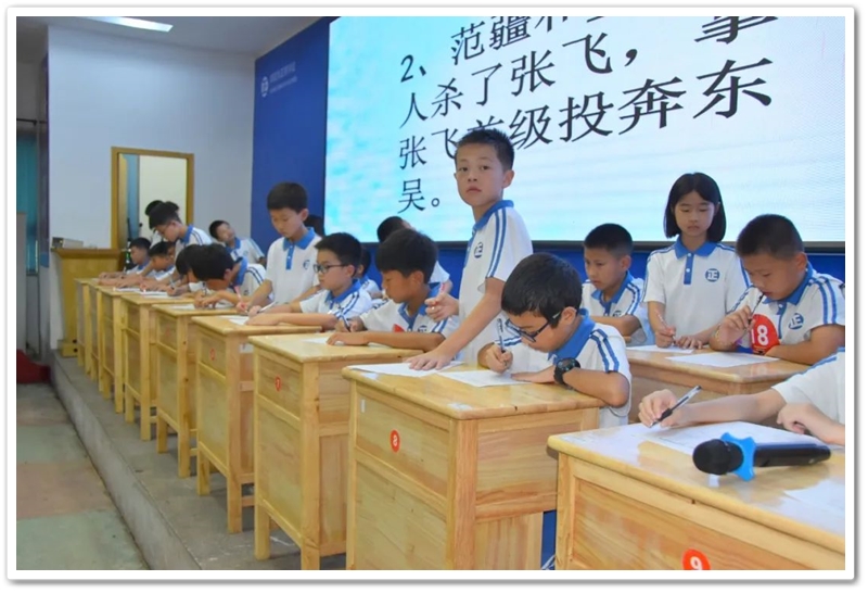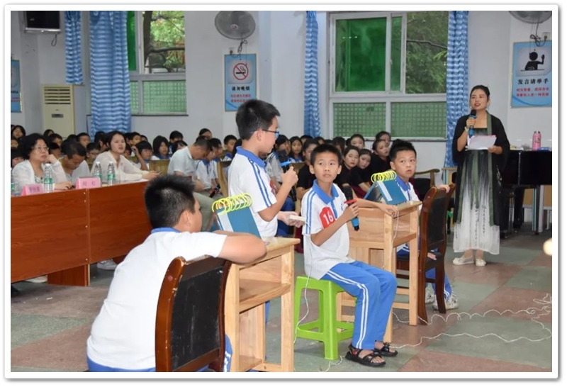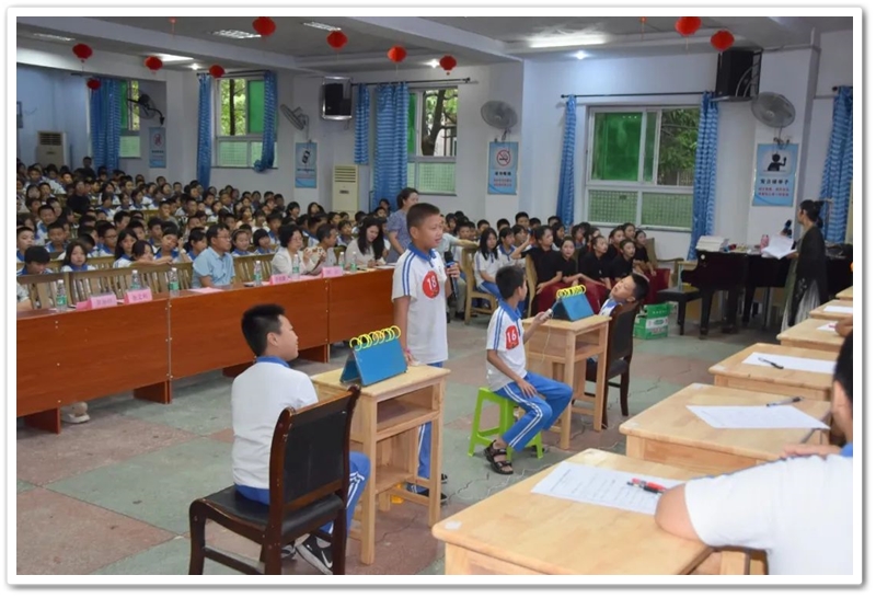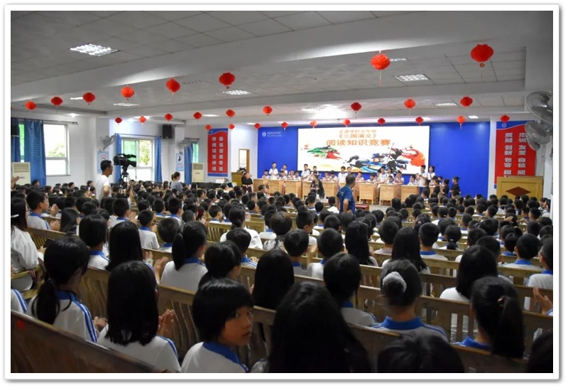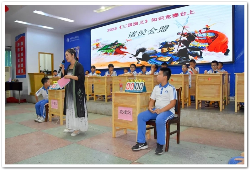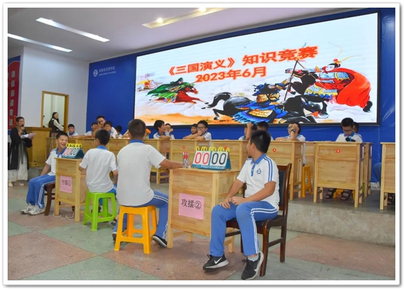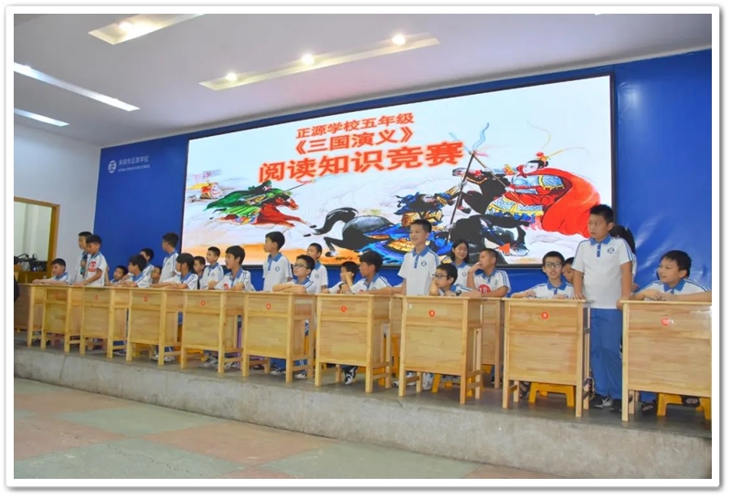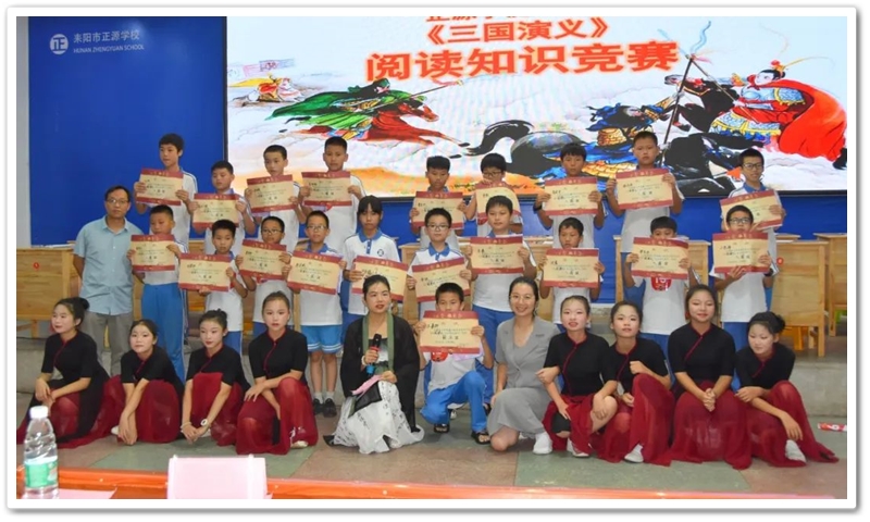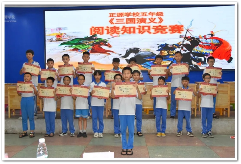 耒河水涨,龙舟争流。端午节过后的6月24号下午,一波三折的《三国演义》知识竞赛终于在报告厅举行。耗时将近两个半小时的台上竞争,让正源小学五年级师生和选手一起品味经典,体验了与耒河龙舟争霸气势相仿的另一场《三国演义》知识争霸赛。